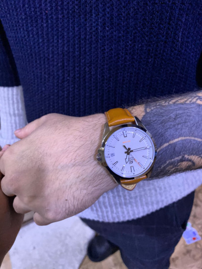 Красивые часы, ремешок из натуральной кожи. Парню понравилось