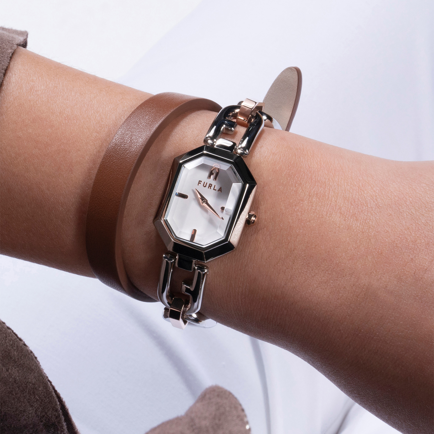 Женские наручные часы FURLA модель WW00044006L5 из коллекции FURLA GLAMOUR CHIC. Японский кварцевый механизм Y120 SEIKO (TMI) использующий элемент питания SR626SW. Стальной корпус размера 22 мм. Минеральное стекло. Стальной браслет с кожаными элементами. Водостойкость 5 АТМ (мытье рук, дождь). Бренд Furla (Фурла) был основан Альдо Фурланетте в Болонье (Италия) в 1927 году. Сегодня, как и в начале своего пути, бренд продолжает свое дело – создает великолепные изделия, основываясь на традиции мастерства, опыте, приверженности новаторству и чувстве прекрасного. Вся продукция бренда, будь то сумки, обувь или аксессуары, обладают высочайшим качеством и современным итальянским стилем. Страна-изготовитель: Китай. При изготовлении используются только надежные Японские механизмы. ВНИМАНИЕ! Заявленная водостойкость гарантируется только при плотно закрытой или закрученной заводной головке!