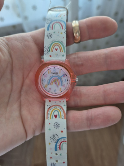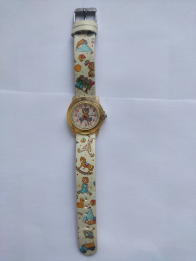 Купили чтоб учить время. Ребенок рад. Часы красивые, ремешок мягкий, удобный. На детской руке смотрятся аккуратно. Стрелки яркие, выразительные. Потом купим побольше и без картинок, но уже к школе. Цена со скидкой очень приемлема. В других магазинах такой не было.