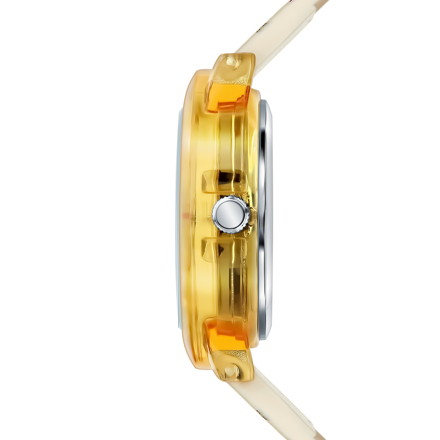 Корпус выполнен из пластика, минеральное стекло с антибликом защищает циферблат от внешнего воздействия. Японский кварцевый механизм Seiko PC21S обеспечивает точный ход и оснащен функциями времени в 12 часовом формате и секундной стрелки. Водозащита 3 bar (30 m/99 ft) защитит от брызг и дождя.