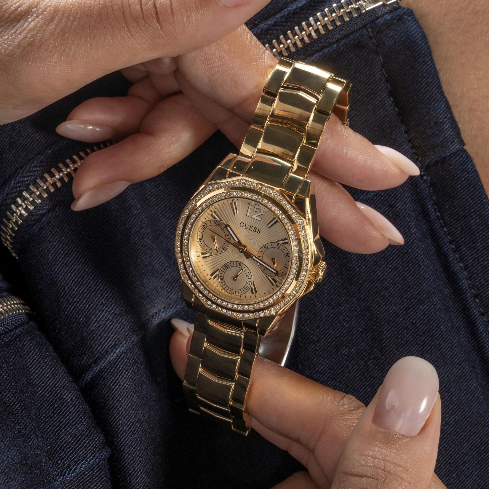 Женские наручные часы GUESS модель GW0685L2 из коллекции GUESS DRESS. Японский кварцевый мультифункциональный механизм VX7JE1 SEIKO (TMI) с вынесенными на отдельные циферблаты датой, днем недели и часовой стрелкой в режиме 24 часа использующий элемент питания SR927SW. Стальной корпус размера 36 мм. Минеральное стекло. Стальной браслет. Водостойкость 5 АТМ (мытье рук, дождь). GUESS – лидер в индустрии фешен часов по длительности присутствия на рынке и по ширине коллекции, ежегодно создает более 100 новинок. Компания GUESS Watches, основанная в 1984 году в Лос-Анджелесе (США) как пионер революции, возглавила трансформацию часов из простого инструмента для определения времени в стильный аксессуар. Бренд не боится экспериментировать. Разнообразные формы корпуса, сложно декорированные циферблаты, уникальный дизайн браслетов. GUESS – это про тренды и технологии в мире моды. Это яркие и дизайнерские часы, призванные угодить самым смелым фешн-драйверам и энтузиастам моды по всему миру. Страна-изготовитель: Филиппины. При изготовлении используются только надежные Японские механизмы. ВНИМАНИЕ! Заявленная водостойкость гарантируется только при плотно закрытой или закрученной заводной головке!