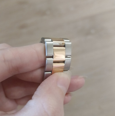 Дизайн великолепный, размер и удобство тоже. Фирму ношу давно, но до этого были только керамические часы. НО...это, конечно, максимально странно - наносить покрытие на звенья только с лицевой стороны. В итоге получаем неокрашенные торцы и несуразную внутреннюю поверхность.