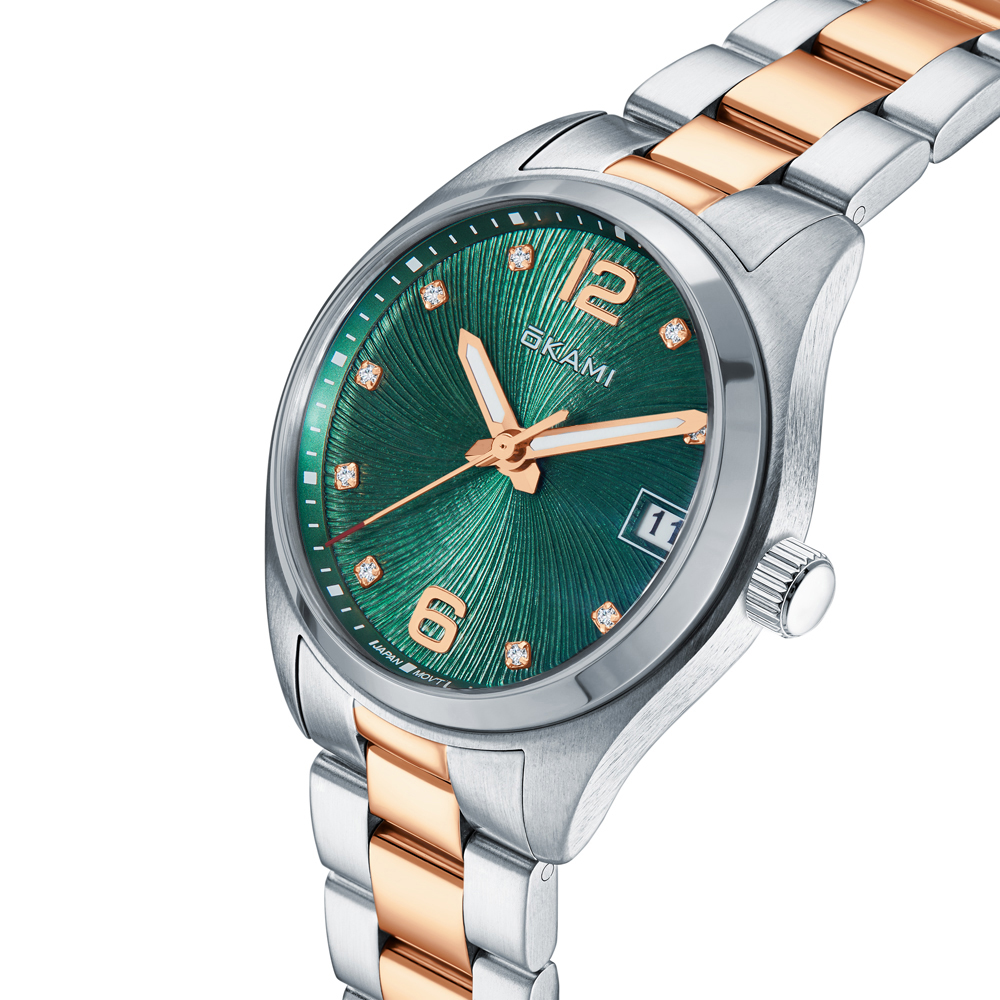 Корпус выполнен из стали, минеральное стекло с антибликом защищает циферблат от внешнего воздействия. Японский кварцевый механизм MIYOTA 2315 обеспечивает точный ход и оснащен функциями времени в 12 часовом формате, секундной стрелкой и датой. Водозащита 10 bar (100 m/330 ft)* позволяет плавать в часах.