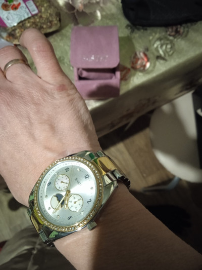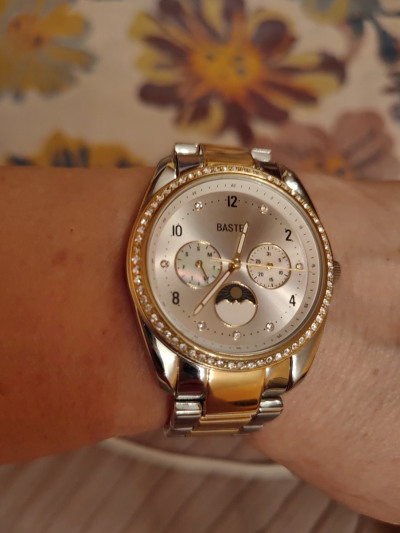 Давно мечтала о таких часах, сочетание цветов под серебро и жёлтое золото. Смотрится очень красиво. В магазине убрали лишние звенья под мой размер оуки. Очень довольна покупкой