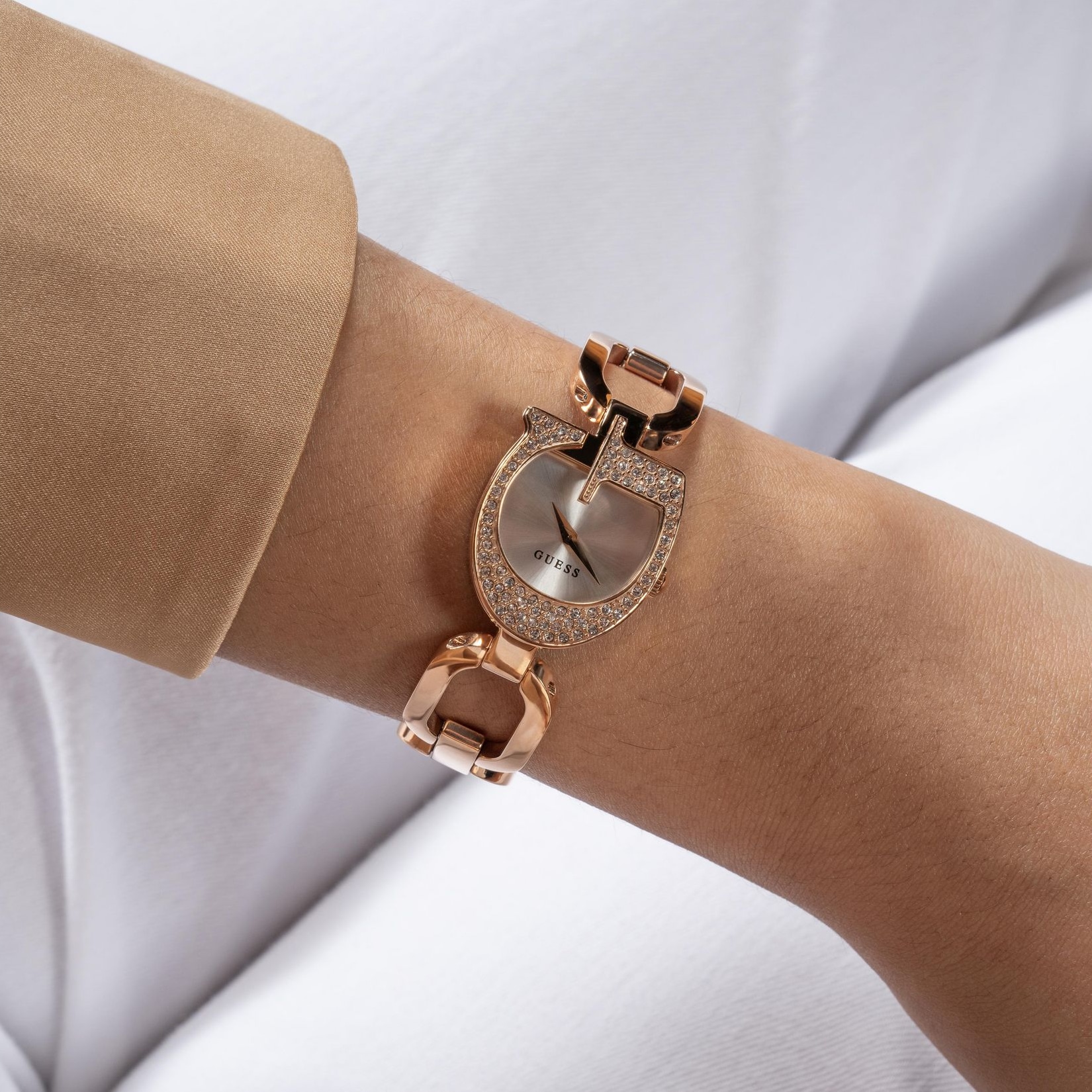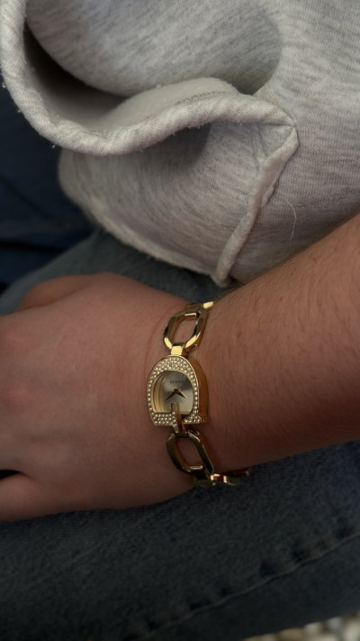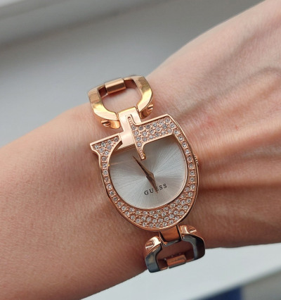 Часы пришли в фирменной коробке, паспорт в комплекте. Подходят под золотые украшения. Единственное, что расстроило, при уменьшении браслета убрали звенья с лейблом guess.