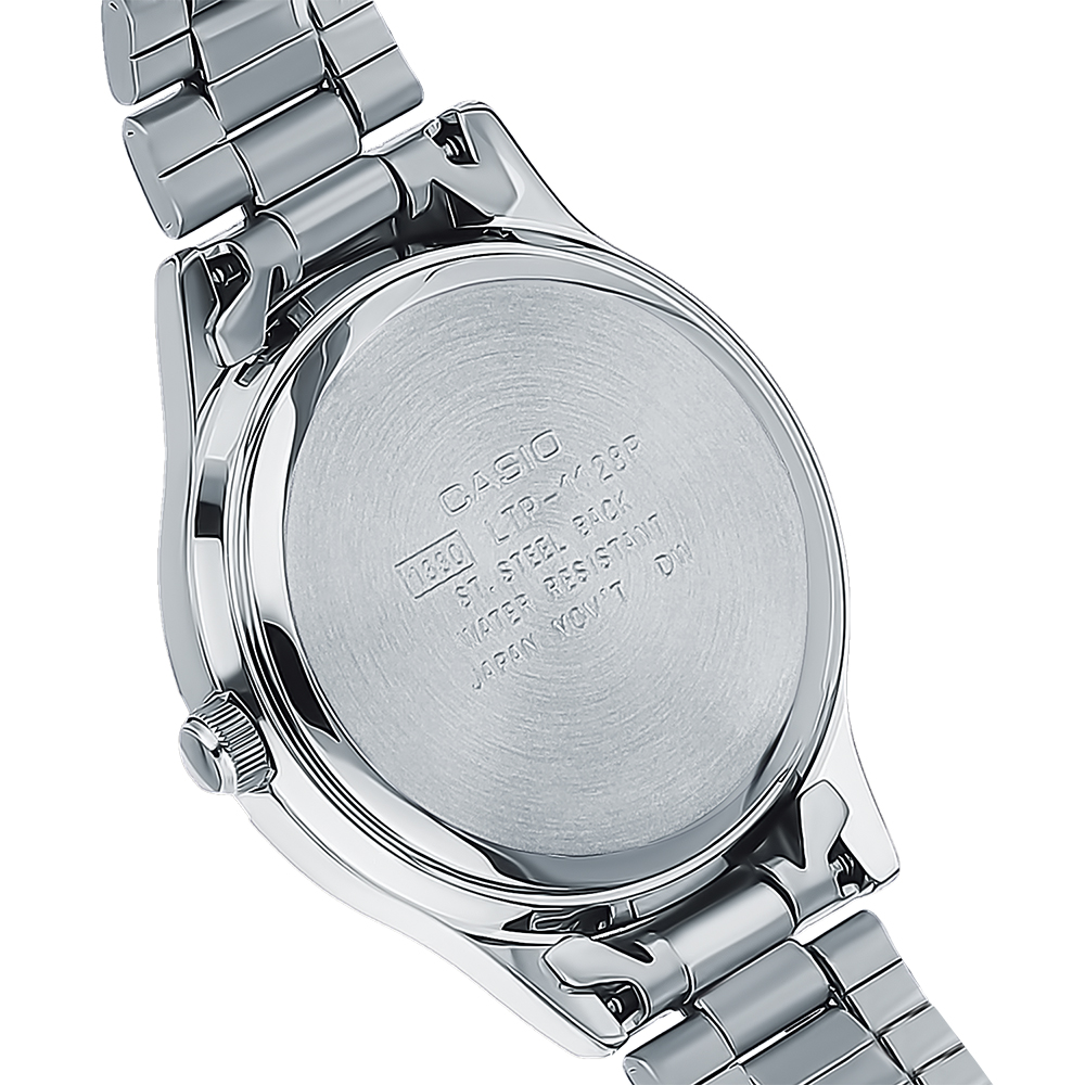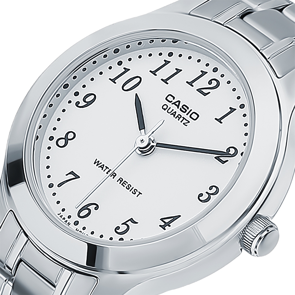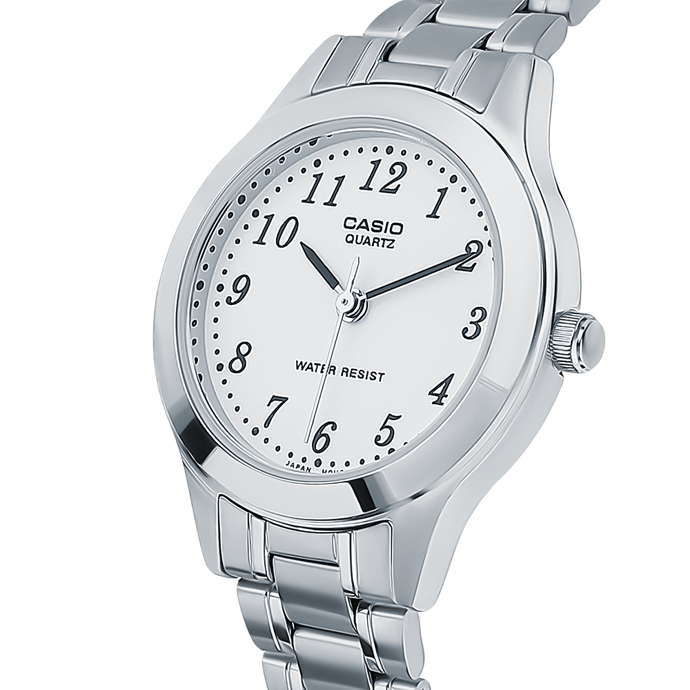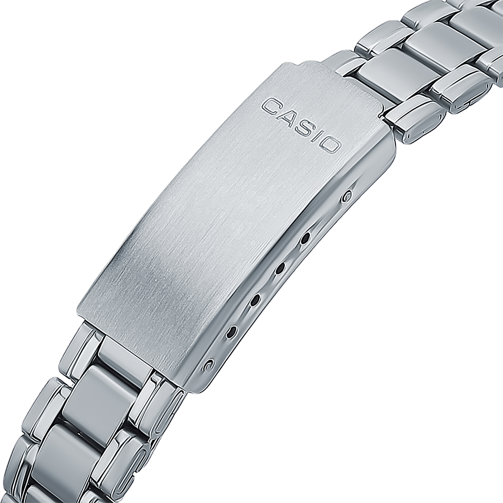 Классические японские кварцевые женские часы Casio серии Collection Women. Почти невесомый корпус из гоипоаллергенной латуни элегантно сядет на любом запястье. Минеральное стекло надежно защищает циферблат. На стрелках часов нанесено необрайтовое покрытие, обеспечивающее длительное послесвечение в темноте даже после кратковременного нахождения на свету.Стальной браслет с раскладывающейся застежкой не даст часам потеряться даже если случайно раскроется. Данная модель брызгозащитная что позволяет попадание на корпус дождя.