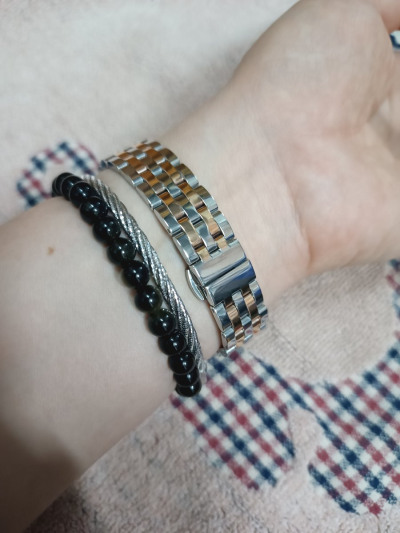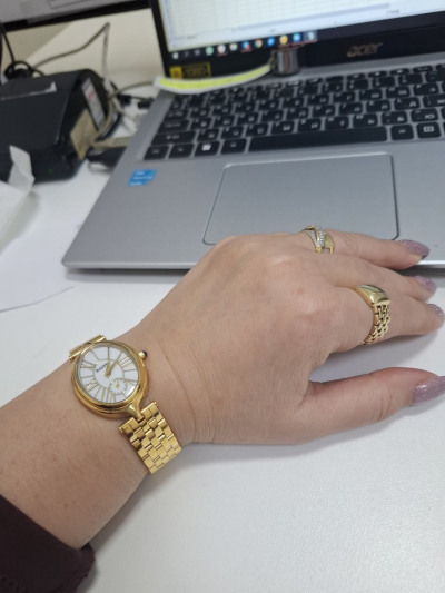 Выбирала именно с металлическим ремешком. И именно комбинированный цвет розового золота и серебра. Потому что ношу и золото и серебро. Короче как девочка) просто по красоте. Эти часики подошли. Не большие, не маленькие. Выглядят достойно! Не дёшево.