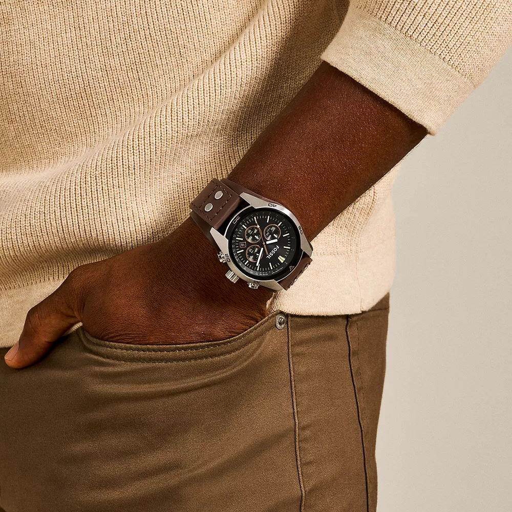 Мужские наручные часы FOSSIL модель CH2891 из коллекции COACHMAN Кварцевая модель хронограф с окошком даты и 24-часовом отсчетом времени. Стальной корпус размера 45 мм. Минеральное стекло. Ремешок выполнен из натуральной кожи. Водостойкость 10 АТМ допускает находжение в воде, но без глубоких погружений. Бренд Fossil родом из Техаса, США. Производство часов находится в Китае. При изготовлении используются только надежные Японские механизмы. ВНИМАНИЕ! Заявленная водостойкость гарантируется только при плотно закрытой или закрученной заводной головке!
