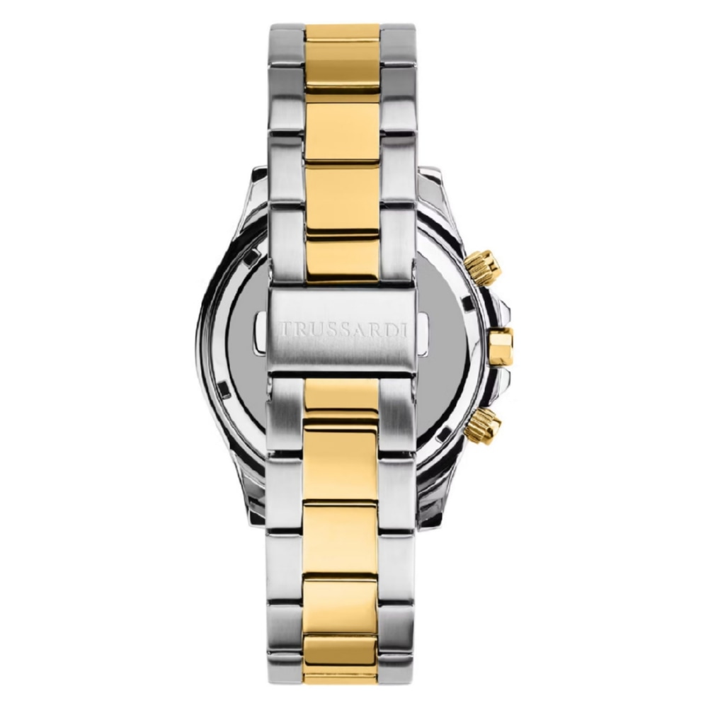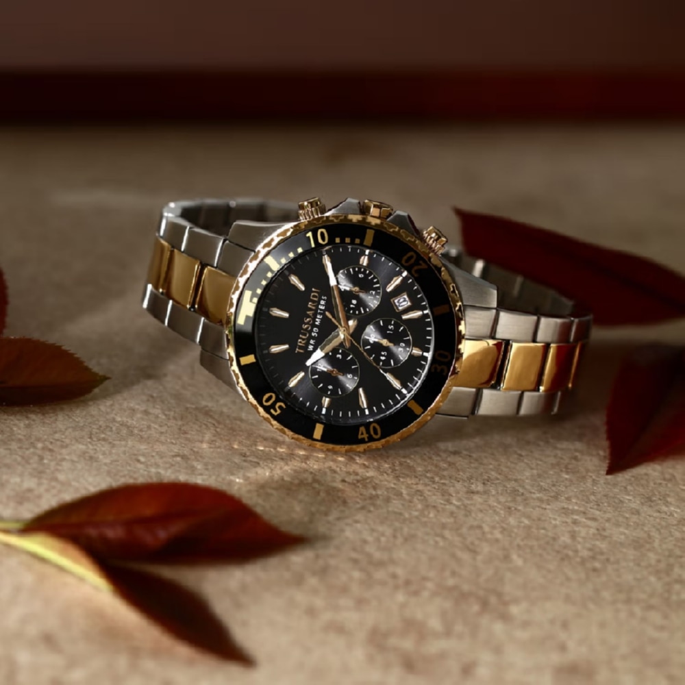 Часы легендарного итальянского дома Trussardi находятся на вершине мировых модных брендов, источая космополитичный дух и современный стиль. Новинка сезона осень-зима 2024/2025 года. Мужская модель R2453169002 из коллекции City Life. Функциональные наручные мужские часы-хронограф с секундомером. Круглый стальной корпус с матовой и полированной отделкой. Декоративный безель с минутной шкалой. Циферблат выполнен по технологии Sunray (солнечные лучи). Окошко даты находится между часовыми отметками 4 и 5. 12-ти и 24-х часовой формат времени. Клиновидные стрелки в стиле Dauphine. Метки и стрелки с люминесцентным покрытием, которое светится в темноте после непродолжительной зарядки на свету. Рифленая заводная головка в форме болта с защитой. Стальной браслет с матовой и полированной отделкой с раскладывающейся застежкой. Минеральное стекло устойчиво к мелким царапинам. Водостойкость 5 АТМ (мытье рук, дождь). Страна производства - Италия. В комплект входит фирменная упаковка, гарантийный талон и инструкция на русском языке. Приобретая этот товар, Вы покупаете изделие от эксклюзивного дистрибьютора марки на территории РФ.