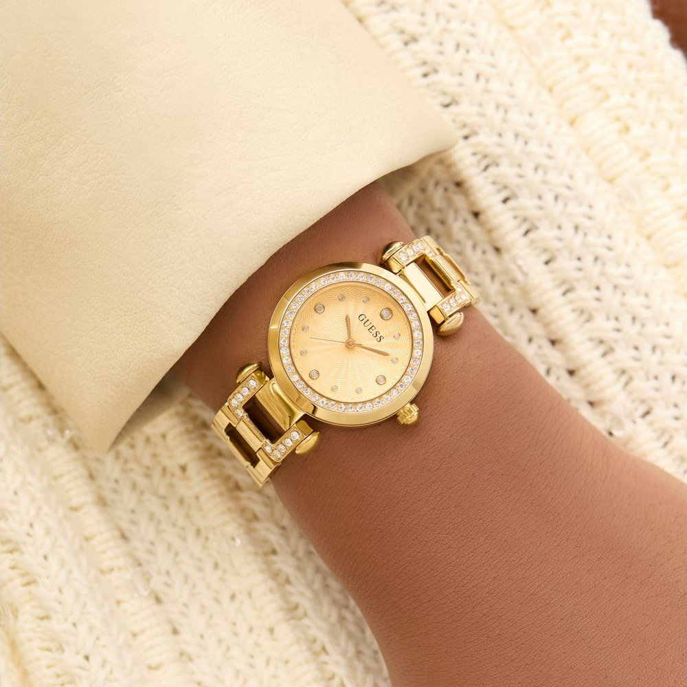 Новинка из коллекции GUESS зима-весна 2025! Женские наручные часы GUESS (ГЕСС) модель GW0869L4 из коллекции GUESS Bejeweled. Японский кварцевый механизм Y121 SEIKO (TMI) использующий элемент питания SR626SW. Стальной корпус размера 30 мм и толщиной 9 мм. Минеральное стекло. Стальной браслет с застежкой ювелирного типа. Циферблат, безель и браслет украшены Австрийскими кристаллами Slellux. Водостойкость 1 АТМ (защита от влаги). Остерегайтесь попадания воды на корпус часов. GUESS – лидер в индустрии фешен часов по длительности присутствия на рынке и по ширине коллекции, ежегодно создает более 100 новинок. Компания GUESS Watches, основанная в 1984 году в Лос-Анджелесе (США) как пионер революции, возглавила трансформацию часов из простого инструмента для определения времени в стильный аксессуар. Бренд не боится экспериментировать. Разнообразные формы корпуса, сложно декорированные циферблаты, уникальный дизайн браслетов. GUESS – это про тренды и технологии в мире моды. Это яркие и дизайнерские часы, призванные угодить самым смелым фешн-драйверам и энтузиастам моды по всему миру. Страна-изготовитель: Филиппины. При изготовлении используются только надежные Японские механизмы. ВНИМАНИЕ! Заявленная водостойкость гарантируется только при плотно закрытой или закрученной заводной головке!