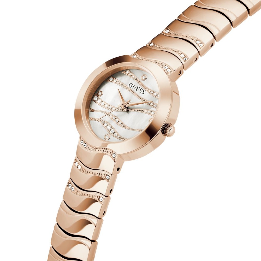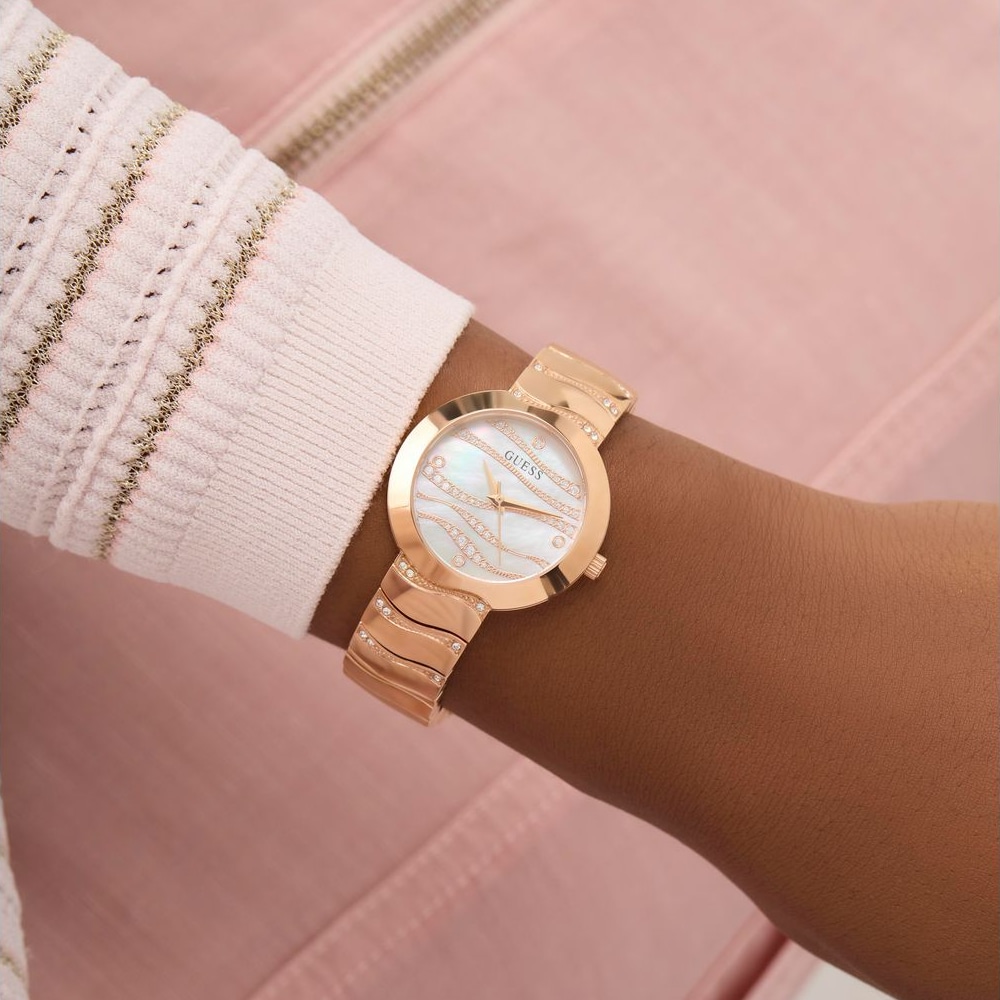 Новинка из коллекции GUESS зима-весна 2025! Женские наручные часы GUESS (ГЕСС) модель GW0871L3 из коллекции GUESS Dress. Японский кварцевый механизм Y121 SEIKO (TMI) использующий элемент питания SR626SW. Стальной корпус размера 30 мм и толщиной 8 мм. Минеральное стекло. Раскладывающаяся застежка с кнопками с двух сторон. Циферблат, безель и браслет украшены Австрийскими кристаллами Slellux. Водостойкость 1 АТМ (защита от влаги). Остерегайтесь попадания воды на корпус часов. GUESS – лидер в индустрии фешен часов по длительности присутствия на рынке и по ширине коллекции, ежегодно создает более 100 новинок. Компания GUESS Watches, основанная в 1984 году в Лос-Анджелесе (США) как пионер революции, возглавила трансформацию часов из простого инструмента для определения времени в стильный аксессуар. Бренд не боится экспериментировать. Разнообразные формы корпуса, сложно декорированные циферблаты, уникальный дизайн браслетов. GUESS – это про тренды и технологии в мире моды. Это яркие и дизайнерские часы, призванные угодить самым смелым фешн-драйверам и энтузиастам моды по всему миру. Страна-изготовитель: Филиппины. При изготовлении используются только надежные Японские механизмы. ВНИМАНИЕ! Заявленная водостойкость гарантируется только при плотно закрытой или закрученной заводной головке!