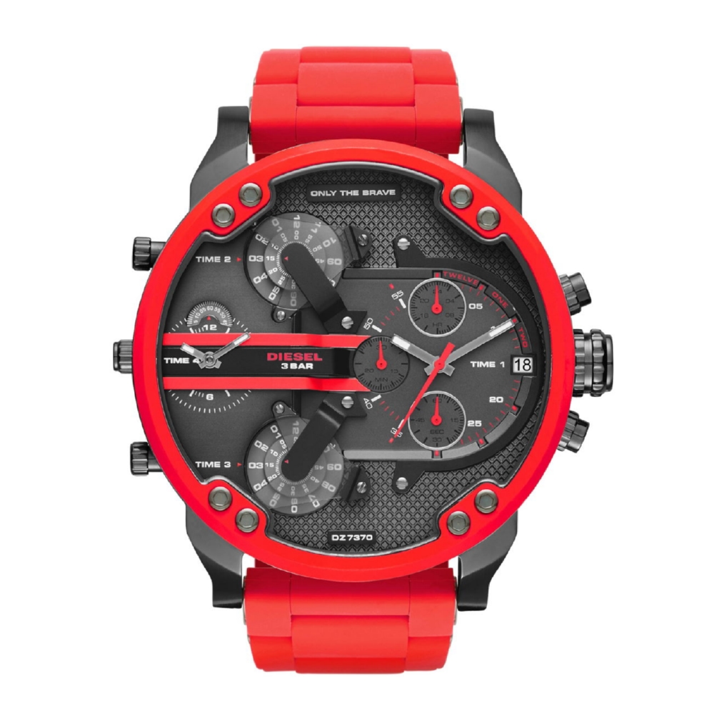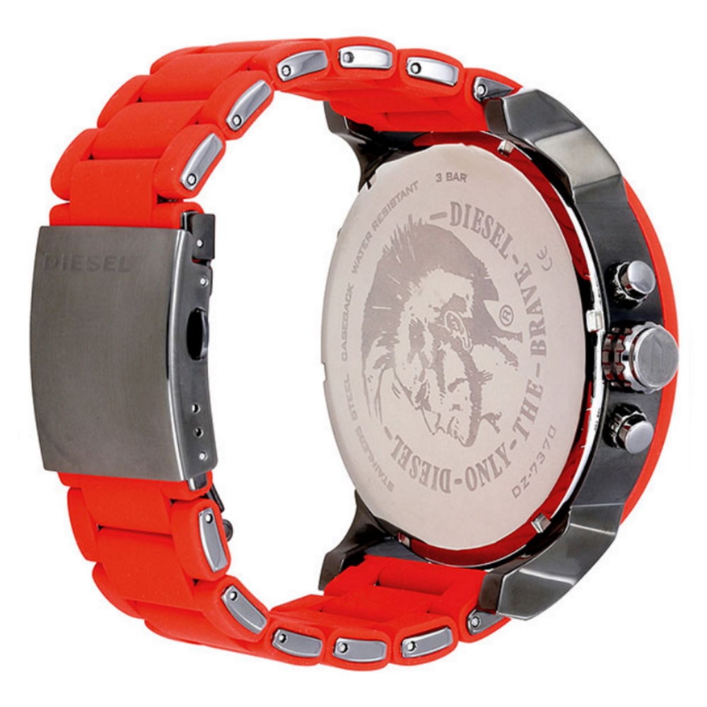 Наручные кварцевые мужские часы марки DIESEL артикул DZ7370. Стальной корпус размера 57 мм и толщиной 14 мм. Кроме стандартных в модели добавлена функция секундомера (хронограф) и часовая стрелка в режиме 24 часа. Минеральное стекло. Ремешок из полимерного материала (силикона). Водостойкость 3 АТМ (защита от брызг). Остерегайтесь попадания часов в воду. Diesel – международная дизайнерская компания из Италии, производитель модной одежды, а также часов и ряда других товаров. С 1999 года Diesel S.p.A входит в американский холдинг Fossil Group, один из крупнейших производителей часов в мире. ВНИМАНИЕ! Заявленная водостойкость гарантируется только при плотно закрытой или закрученной заводной головке!