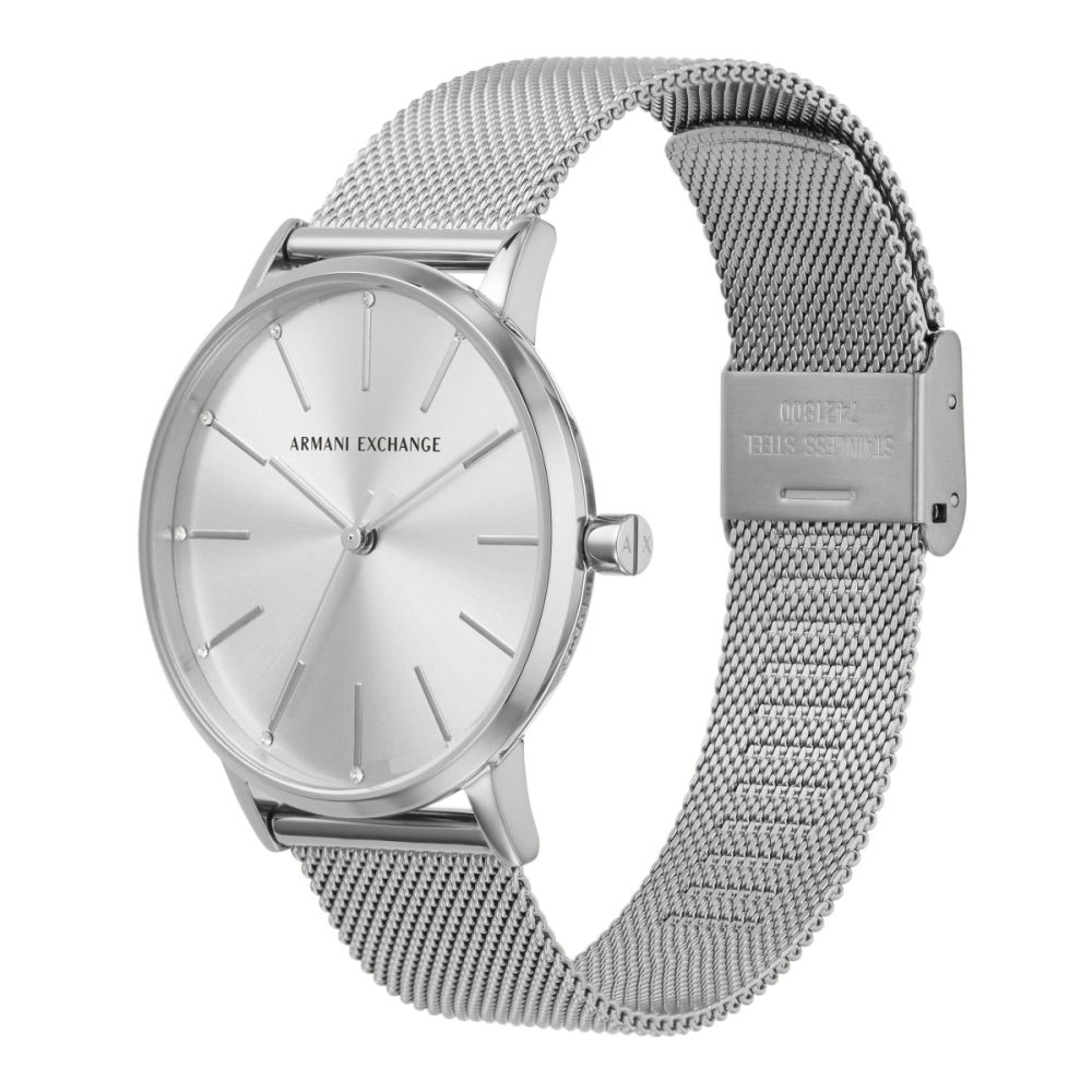 Наручные кварцевые женщинам часы марки ARMANI EXCHANGE артикул AX5535. Стальной корпус размера 36 мм и толщиной 7 мм. Минеральное стекло. Стальной браслет. Водостойкость 5 АТМ (мытье рук, дождь). История всемирно известной компании Giorgio Armani берет свое начало в 1975 году в Милане, когда Джорджио Армани и Серджио Галеотти создали свое предприятие. Спустя пару десятков лет непрерывной деятельности компания была признана одной из лидирующих компаний в мировой моде. В 1991 именитый дизайнер создает бренд Armani Exchange, продукция которого предназначена для городских жителей, не желающих отставать от модных тенденций современности. ВНИМАНИЕ! Заявленная водостойкость гарантируется только при плотно закрытой или закрученной заводной головке!
