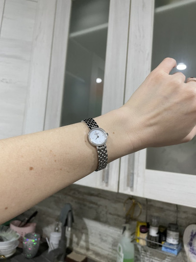 Маленькие,изящные и ооочень красивые часики! Бриллианты мерцают, перламутровый цыферблат. Глаз не оторвать! Очень довольна покупкой!