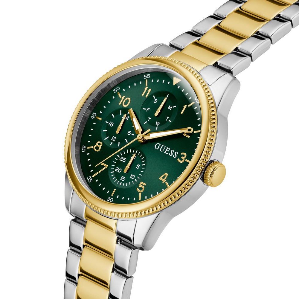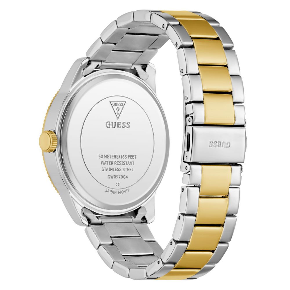 Мужские оригинальные кварцевые часы GUESS артикул GW0970G4 из коллекции SPORT. Стальной корпус размера 44 мм толщиной 10.8 мм ,средний вес 132 гр. Японский кварцевый механизм VX7N работающий на элементе питания SR927SW. Минеральное стекло. Водозащищенность 3 bar (30 m/99 ft) допускает попадание на корпус влаги. НЕ ПОГРУЖАТЬ изделие в воду. Штаб-квартира компании GUESS расположена в Лос-Анджелес США. Часы марки производятся на дву заводах компании, расположенных в Китае и на Филиппинах. У нас представлены модели выпущенные на Филиппинском заводе. В моделях используются надежные японские механизмы Miyota и Seiko. ВНИМАНИЕ! Заявленная водостойкость гарантируется только при плотно закрытой или закрученной заводной головке!