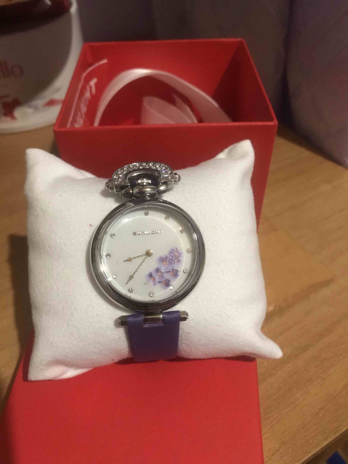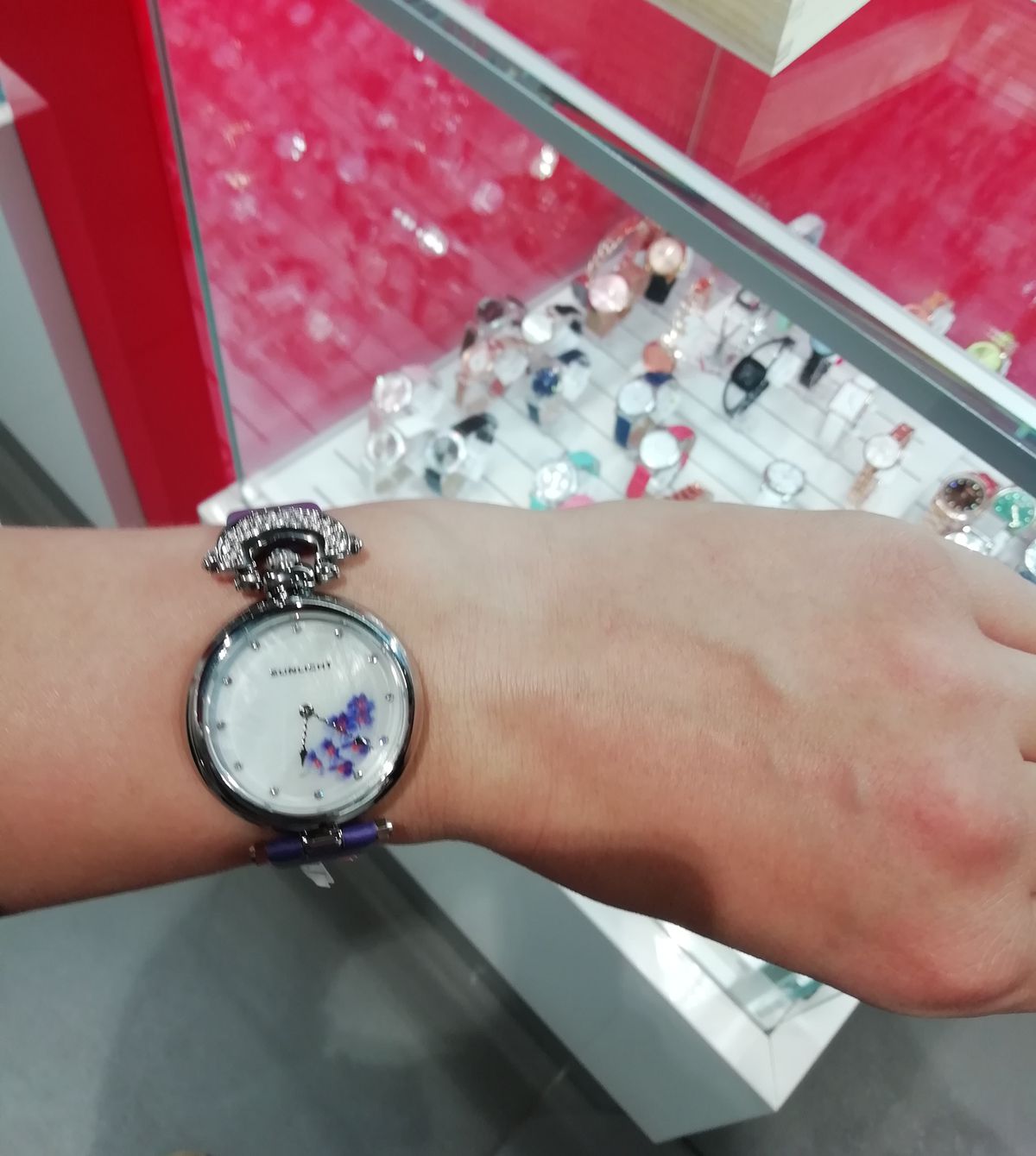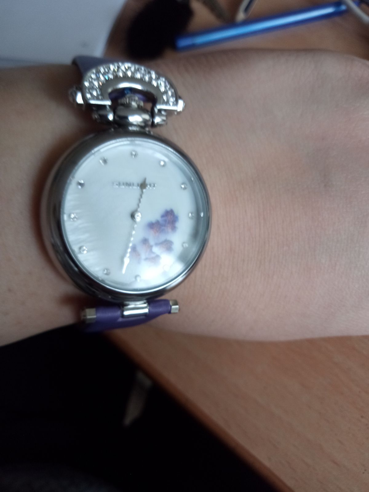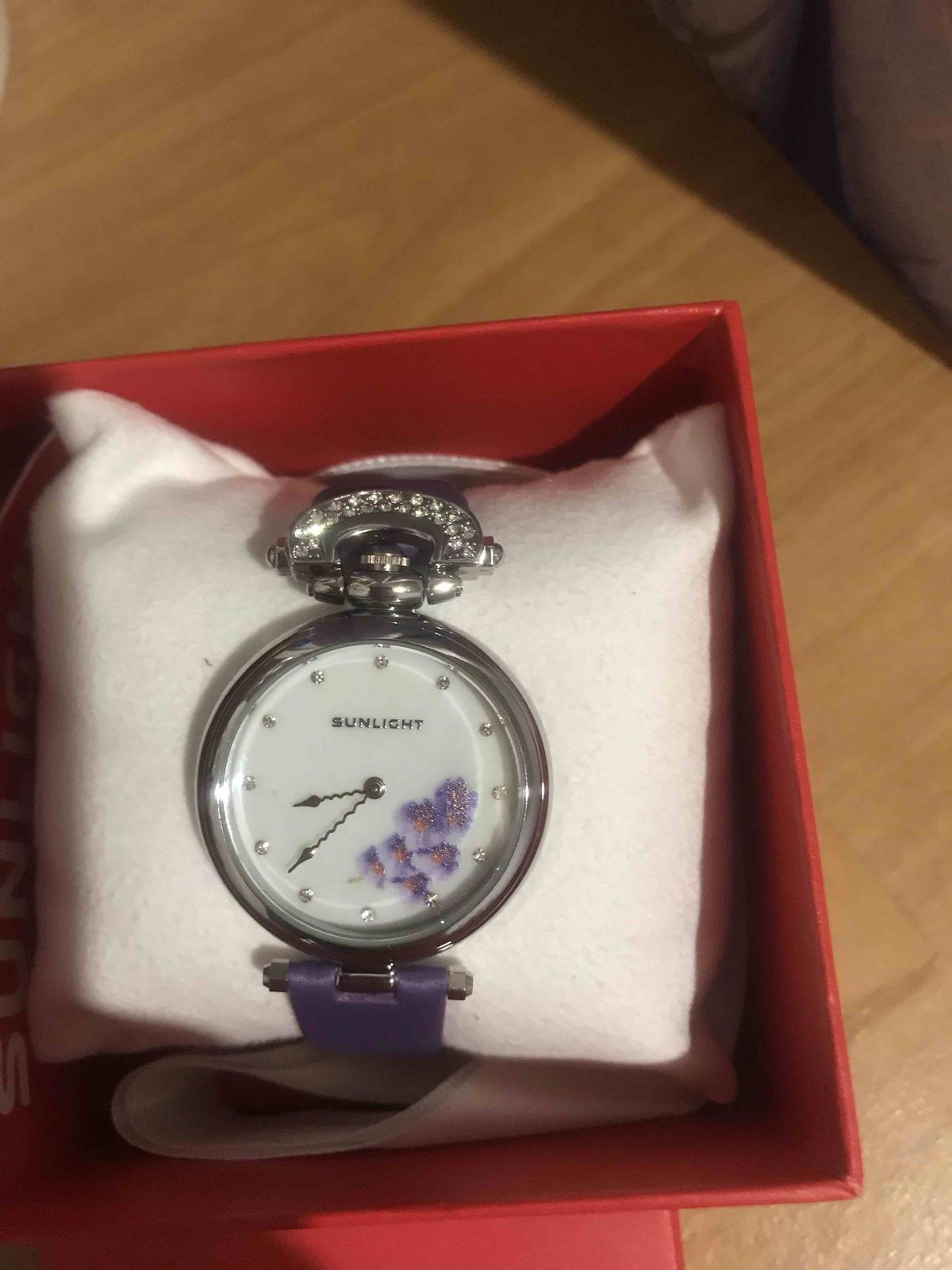 Наконец- то они мои!! Фиолетовые орхидеи, моя мечта! Мерла их ранее, показались громоздкими...ушла, не купив. Но думать о них не переставала ! Сейчас смотрю, все отлично, идеально сидят на руке, хороший циферблат! Веточка орхидеи, не избитый фиолетовый цвет ремешка,и необычная его форма приковывает взгляды! Волнообразная стрелка!👍😁 Модно, стильно! Спасибо санлайт, рекомендую однозначно!👍👍👍