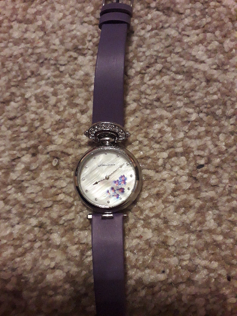 Покупали, как подарок, с большой скидкой. Красивый сиреневый цвет, циферблат большой, время хорошо видно. Всем рекомендую!