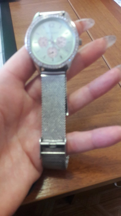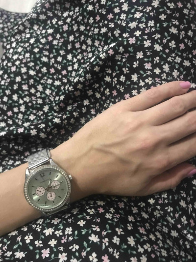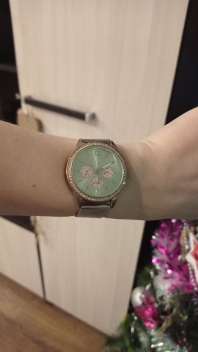 Очень удобные красивые часы. Покупала со скидкой. Удобный и интересный ремешок, очень женственно смотрится на руке, несмотря на видимую громоздкость. По циферблату расположены камушки, за время эксплуатации ни один не потерялся. Ношу уже 3 года, немного подстерлась эмал металла, в остальном все нормально.