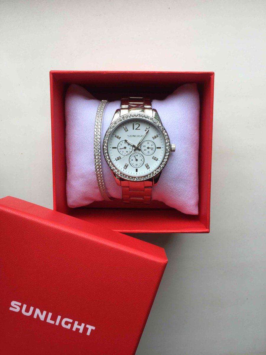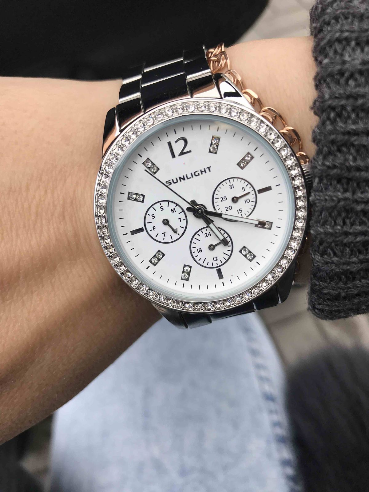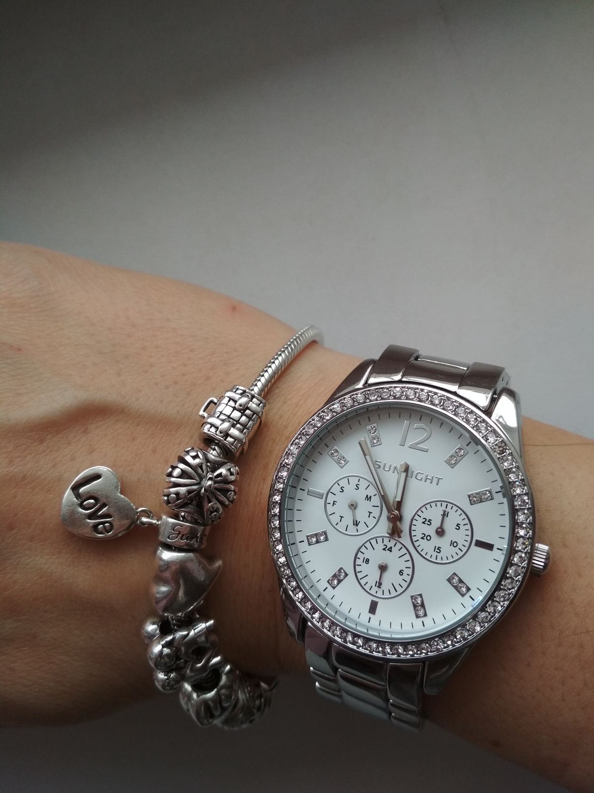 Покупала в подарок часы(к которым подобрали браслет-смотрится как вместе, так и разлельно - красиво). Часы массивные, тяжелые(в меру), качественные, стразы в меру и аккуратно распределены на циферблате, и также вокруг циферблата; очень стильно смоирятся!