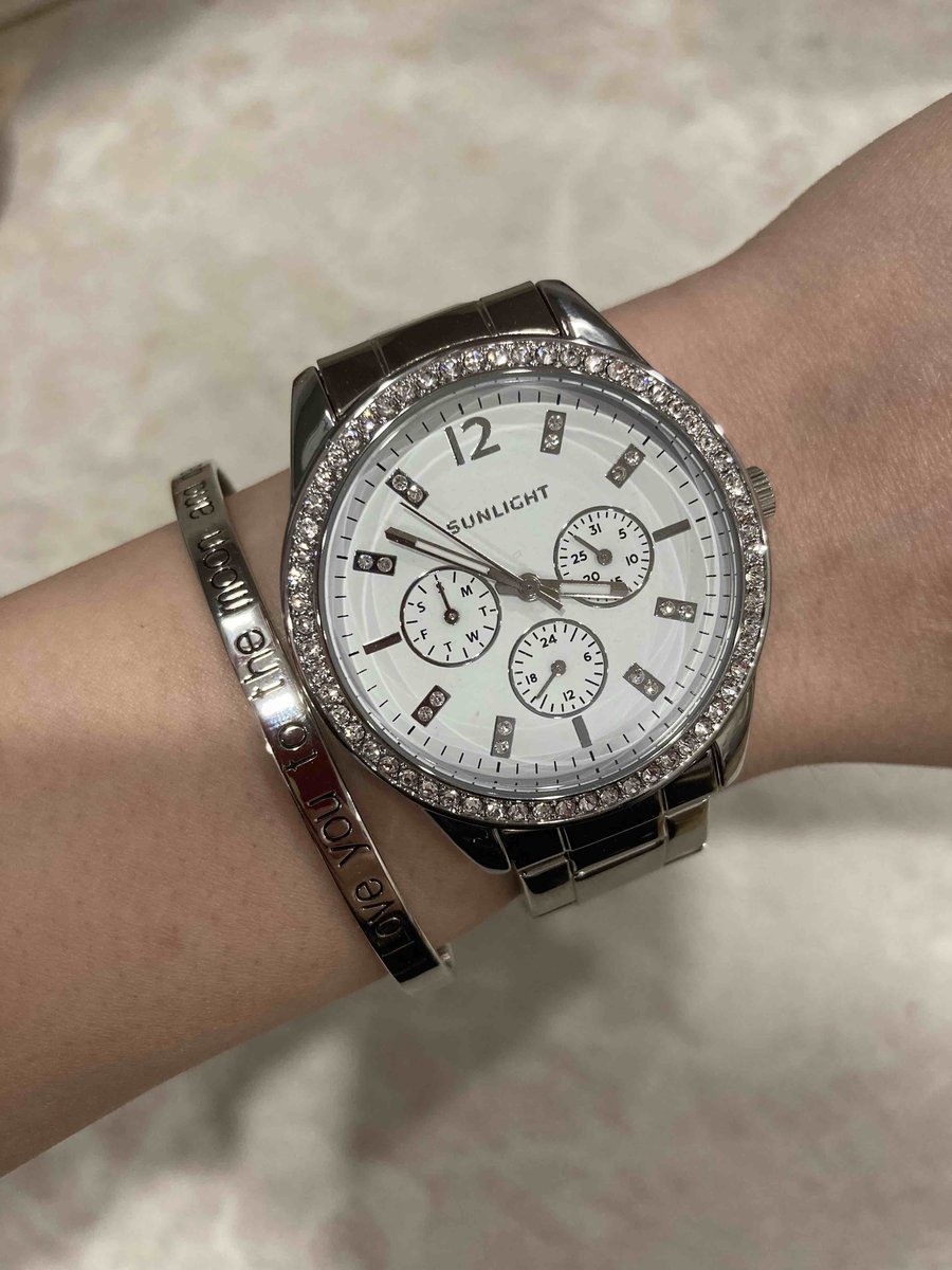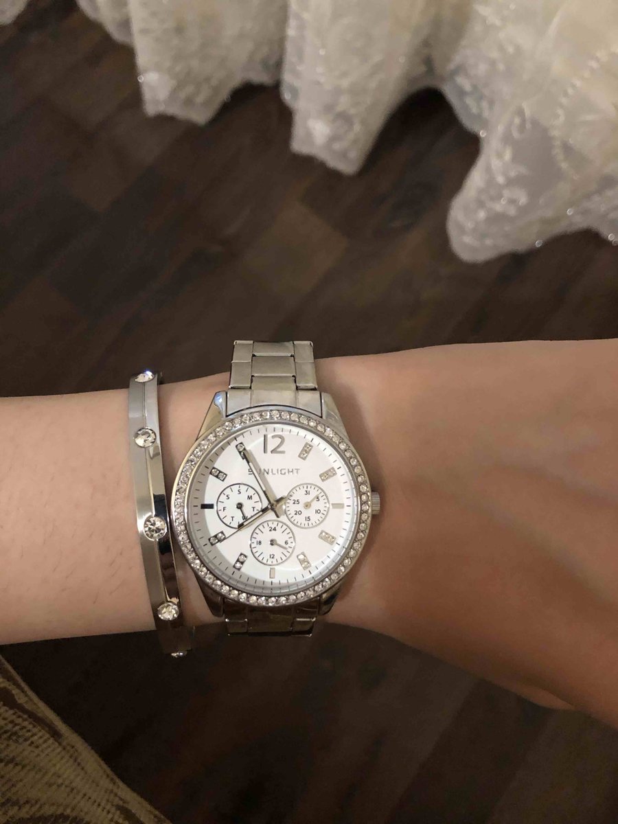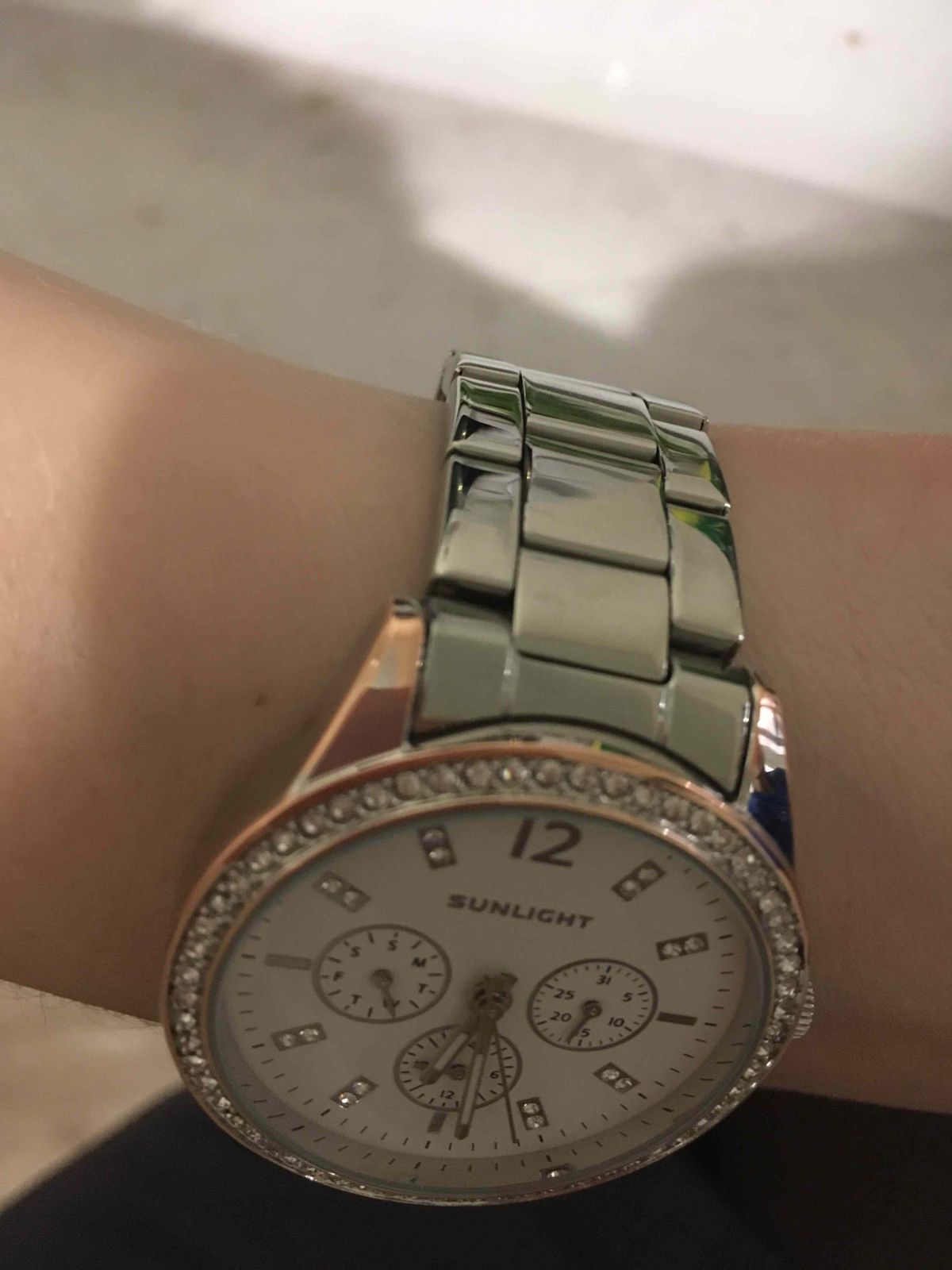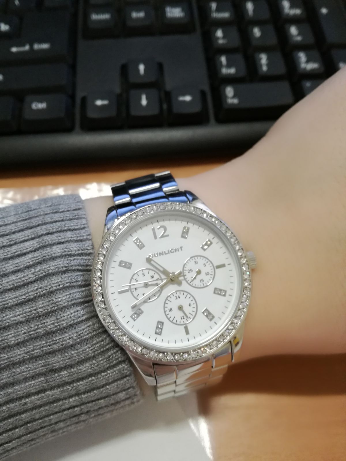 Покупала в подарок часы(к которым подобрали браслет-смотрится как вместе, так и разлельно - красиво). Часы массивные, тяжелые(в меру), качественные, стразы в меру и аккуратно распределены на циферблате, и также вокруг циферблата; очень стильно смоирятся!