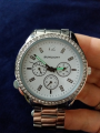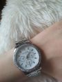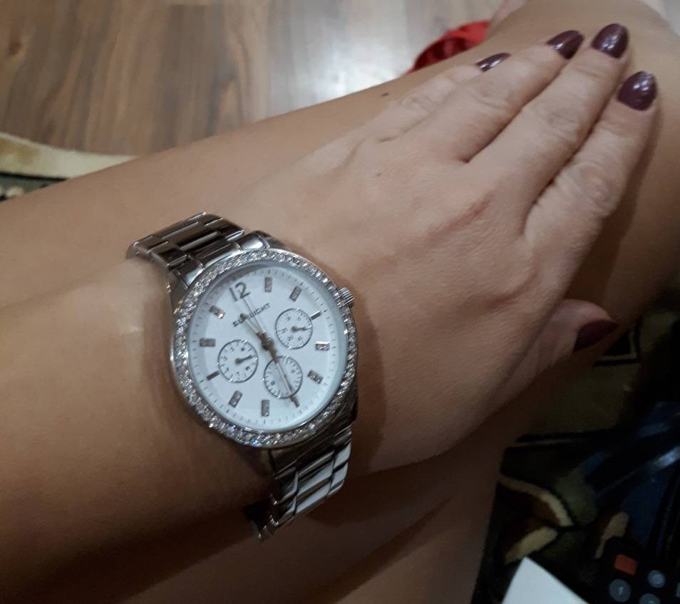 Давно хотела такие часы. Взяла по скидке. Очень довольна покупкой. Часики блестят. Смотрятся очень красиво и элегантно. Убавила браслет на 3 деления. Календарь работает. Рекомендую. 💙