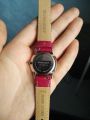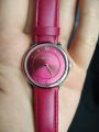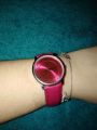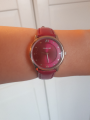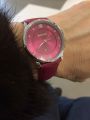 Насыщенно-розовый, яркий ремешок, совпадающий по тону с циферблатом, крупный циферблат, удобство - безусловные достоинства этой модели.