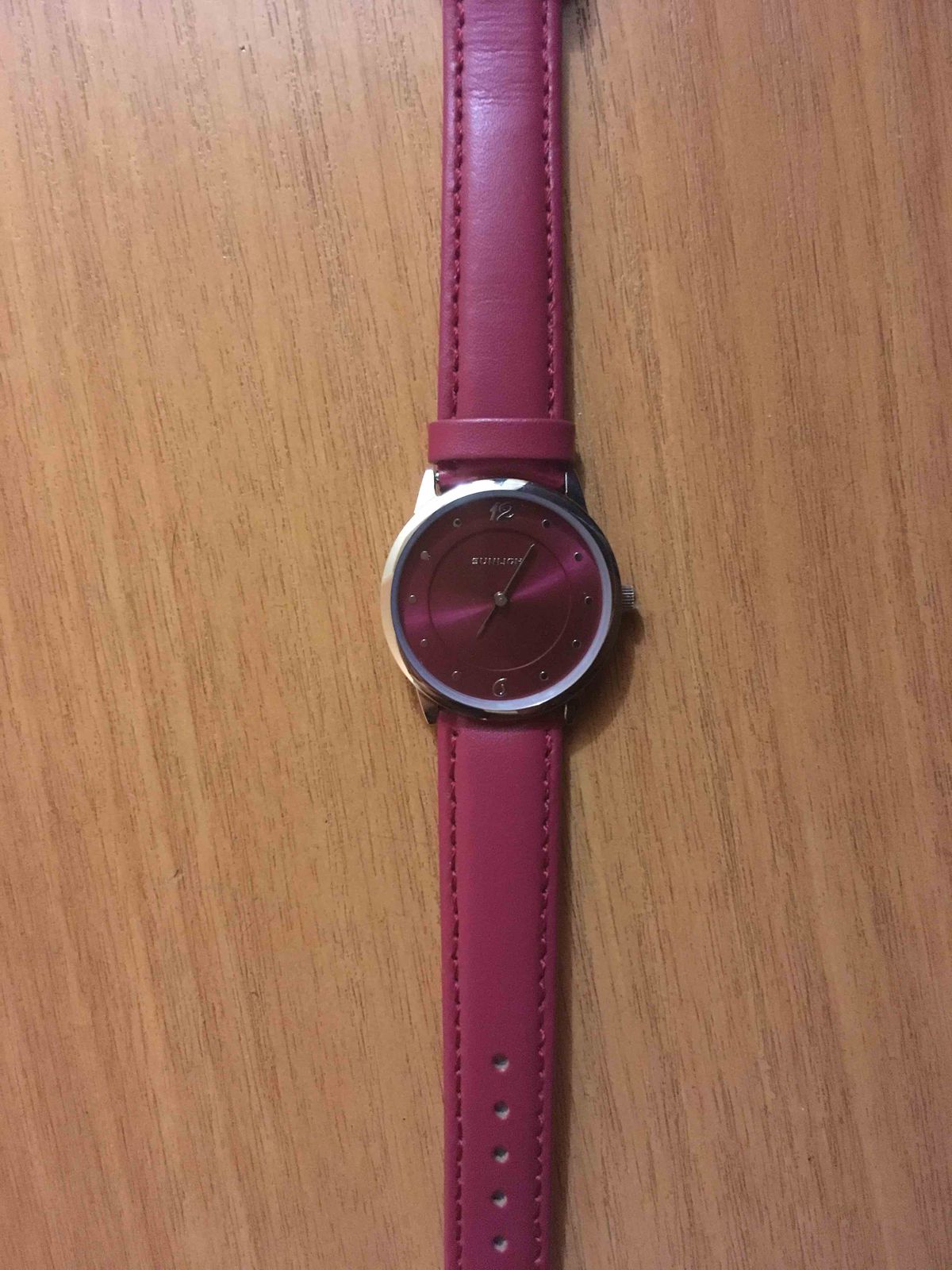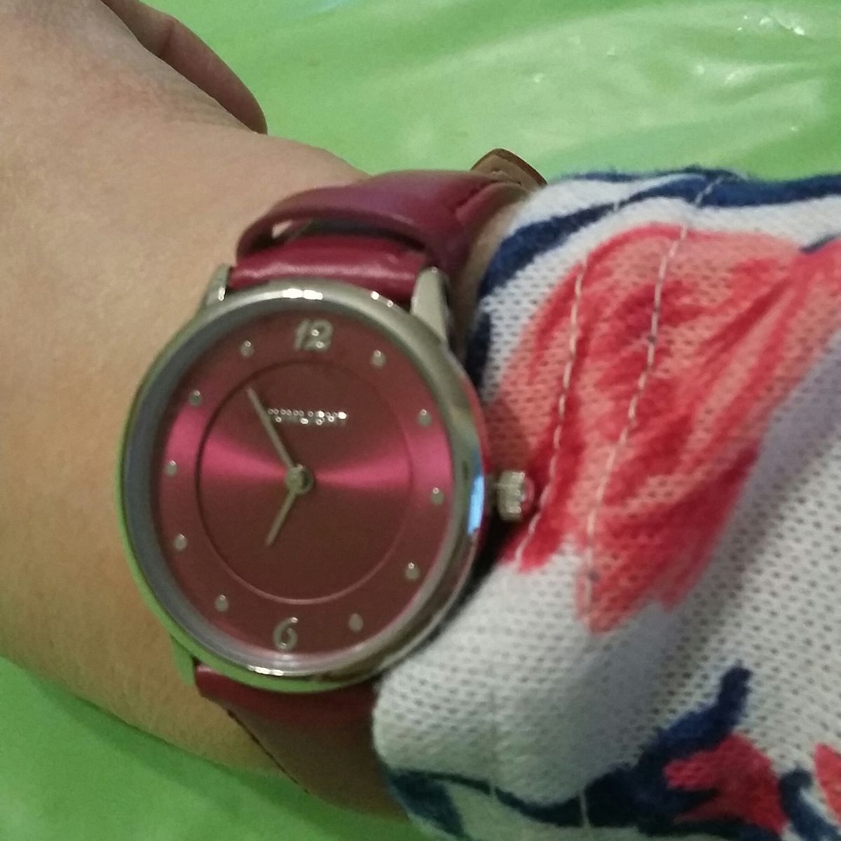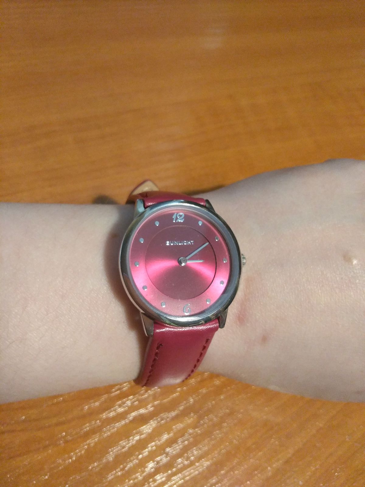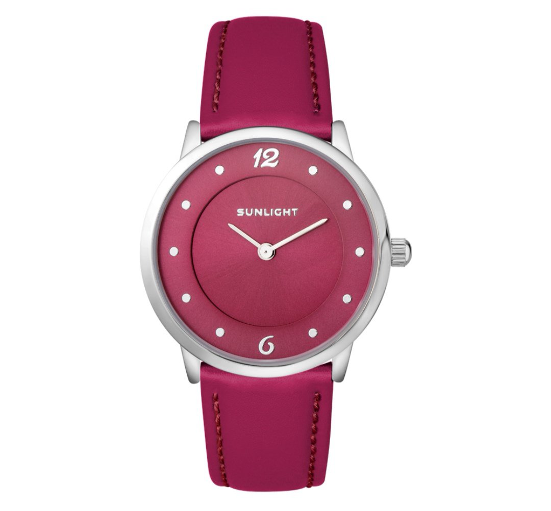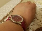 Потрясающий вишнёвый цвет, мягкий ремешок, идеально облегающий запястье, яркий циферблат и хорошо заметные стрелки - секрет идеальных часов!