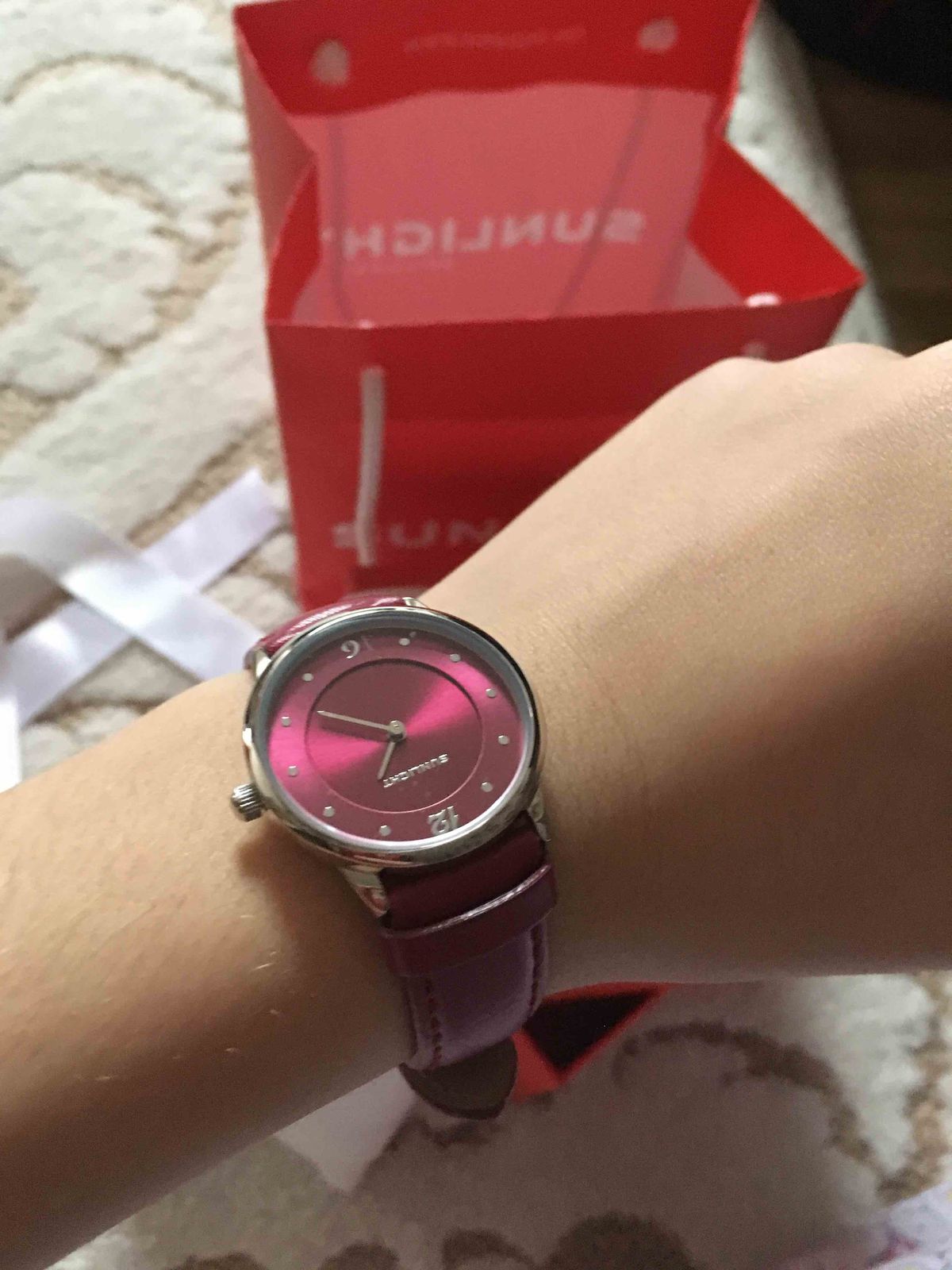 Очень стильные,модной расцветки ,тонкие . Часы смотрятся изящно и современно ! Они не боятся воды. Я очень люблю часы марки SUNLIGНT. У меня это не первые часы ,купленные в этом магазине. Если вы посетите магазин SUNLIGНT , то поразитесь разнообразию часиков различного дизайна и расцветок. У меня в этом магазине куплено несколько часов разного цвета и я их меняю под цвет маникюра. Идут очень четко и ни разу не было поломок. Рекомендую всем магазин SUNLIGНT, в котором вас обслужат быстро и профессионально. И особенно приятно сочетание не высокой цены и качества самого высокого уровня !
