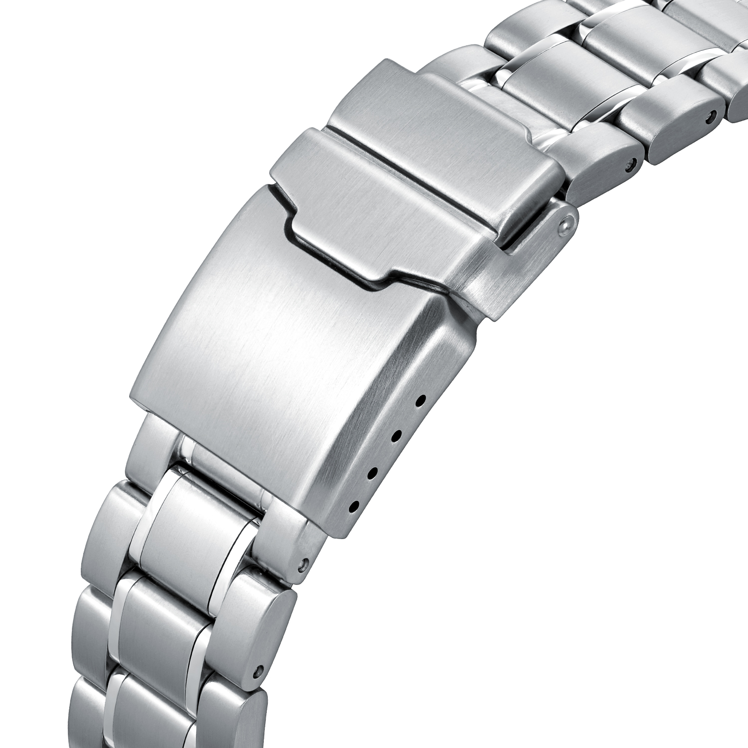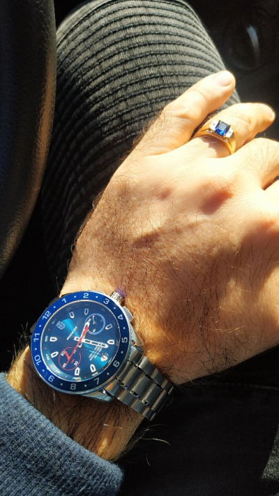 Раньше часы в магазине Санлайт даже не рассматривал. Сегодня приобрел ради интереса да и для коллекции. Первое, что удивило стоит японский механизм. Если верить чеку. В тоже время ни на задней крышке, ни на циферблате производитель не ставит гордое япон мувмент. Очень качественный браслет. Прямо даже удивительно до какой степени он вселяет уверенность в прочности. Дизайн часов тоже радует. Симпатяги. Ещё бы немного люминофора, боло бы супер. И рисок для считывания точных показаний не хватает. Между корпусом и безелем вероятно для уплотнения установлена не жосткая прокладка. Головка установки стрелок тоже с прокладкой. Производитель заявляет 200м. Хронограф работает. Купил по акции 1=2. Всё радует.