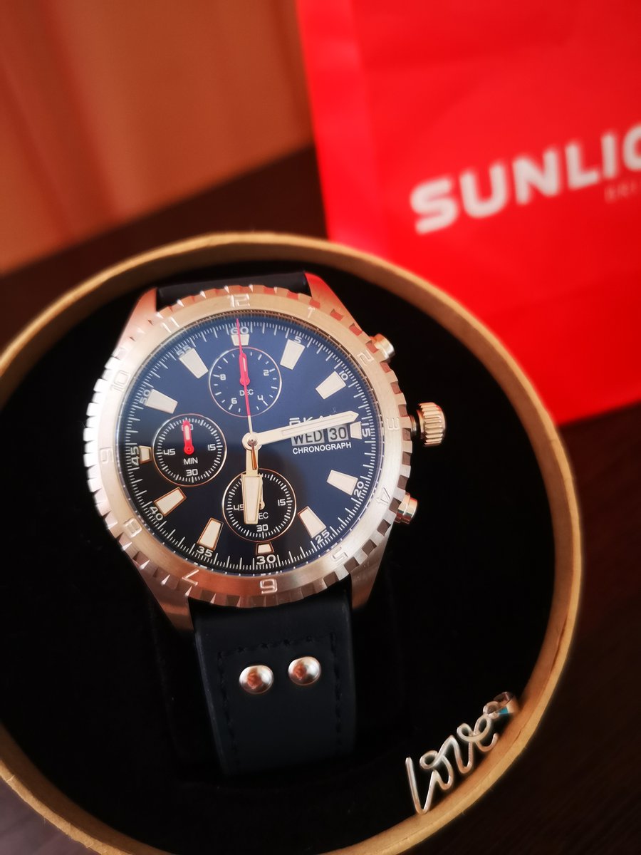 Эти часы купила для мужа сестры. Было 2 варианта: синие и коричневые, парень молодой, выбрала синие. Он просто в восторге. Спасибо Sunlight за красивые и качественные изделия.