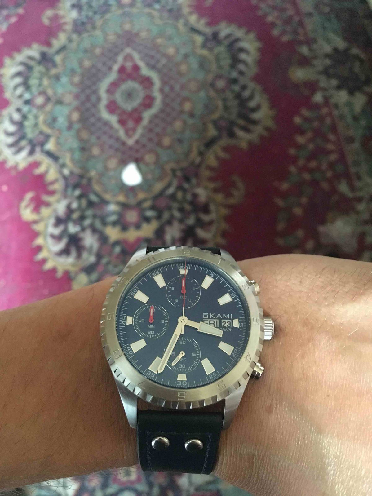 Пришло всё вовремя, в целости и сохранности (немного только краска с краю кнопки стёрта).Механизм часов работает, с настройкой разобрались быстро, ничего сложного.Весьма ощутимы на руке, смотрятся шикарно.