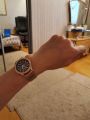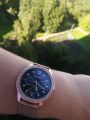 Интересная модель, в жизни смотрятся здорово, за счет тонкого ремешка выглядят очень аккуратными, не массивные. Стрелочки, побывав на свету, светятся в темноте.