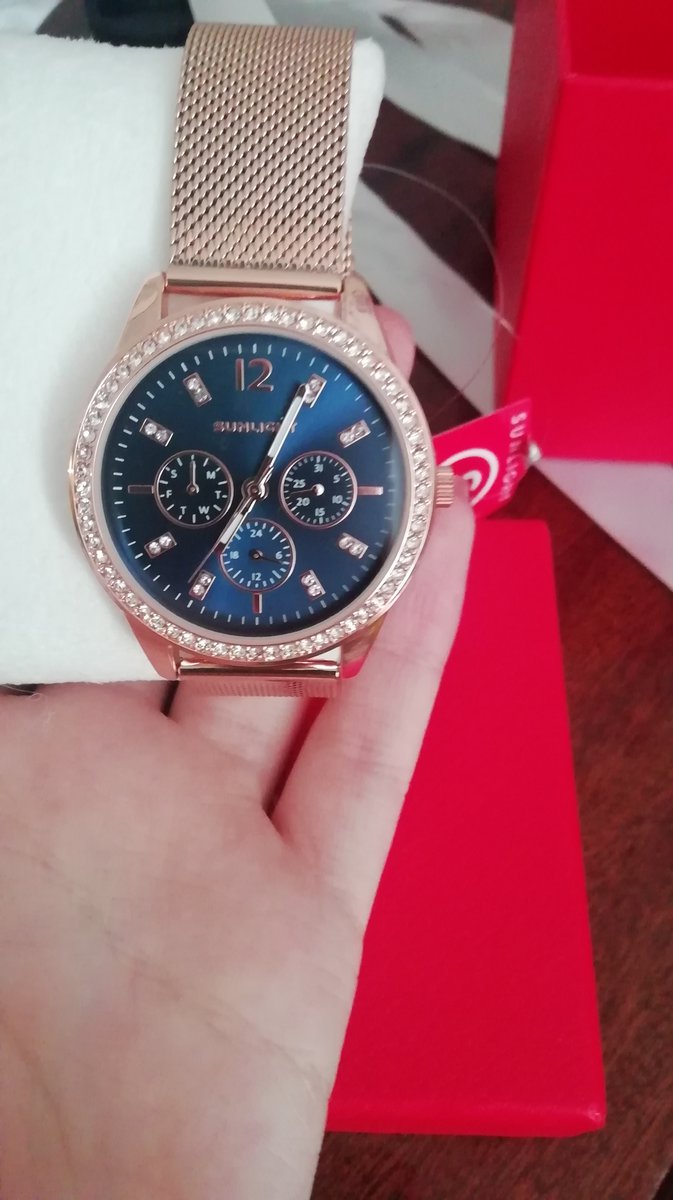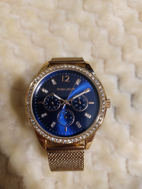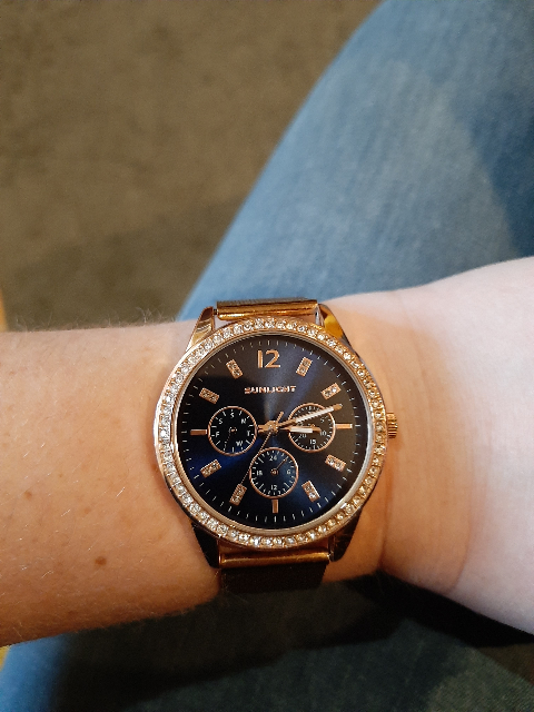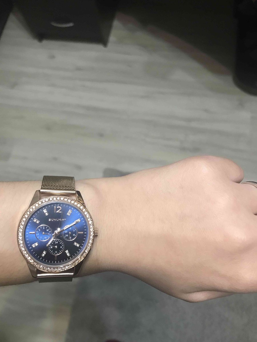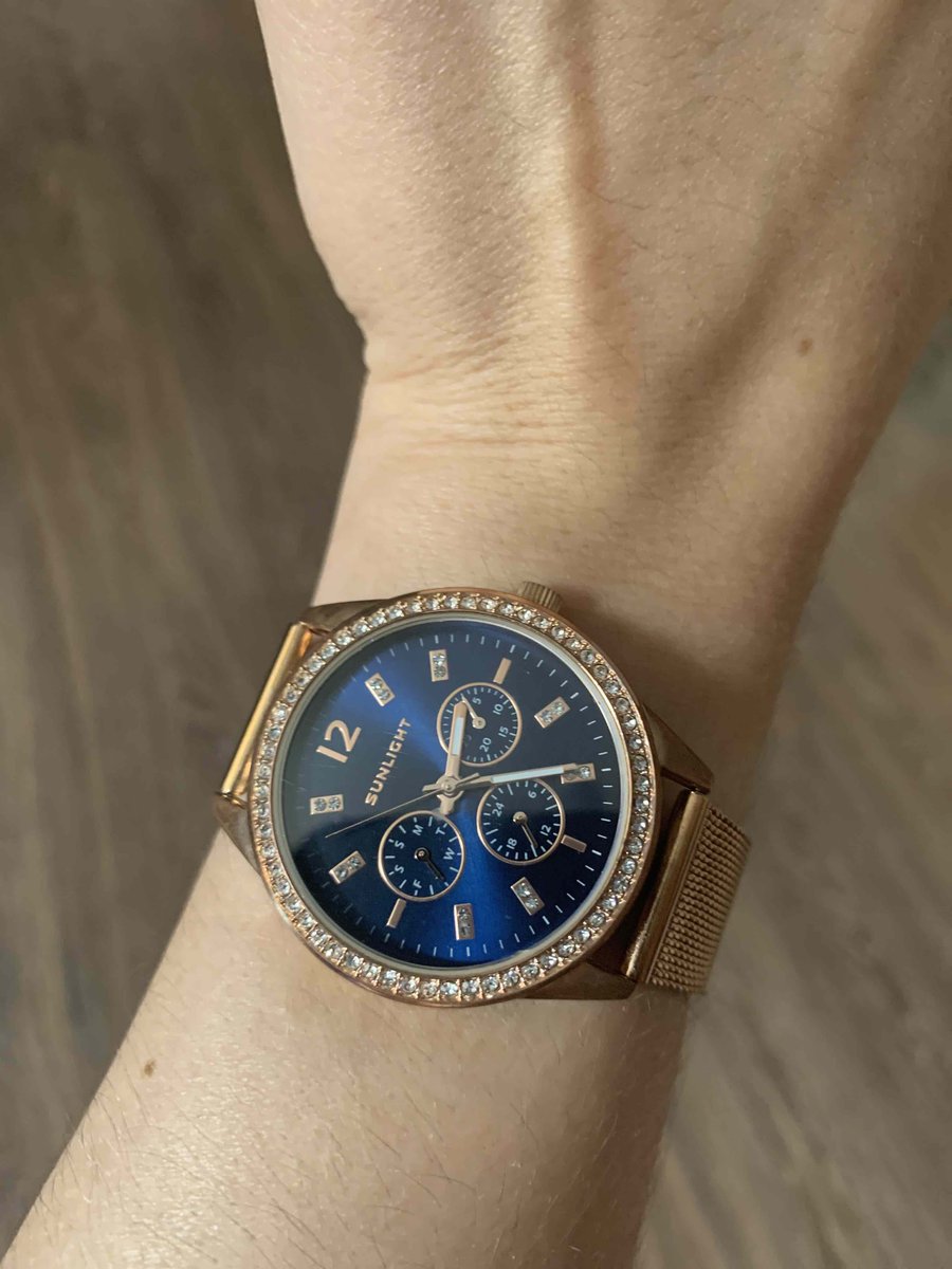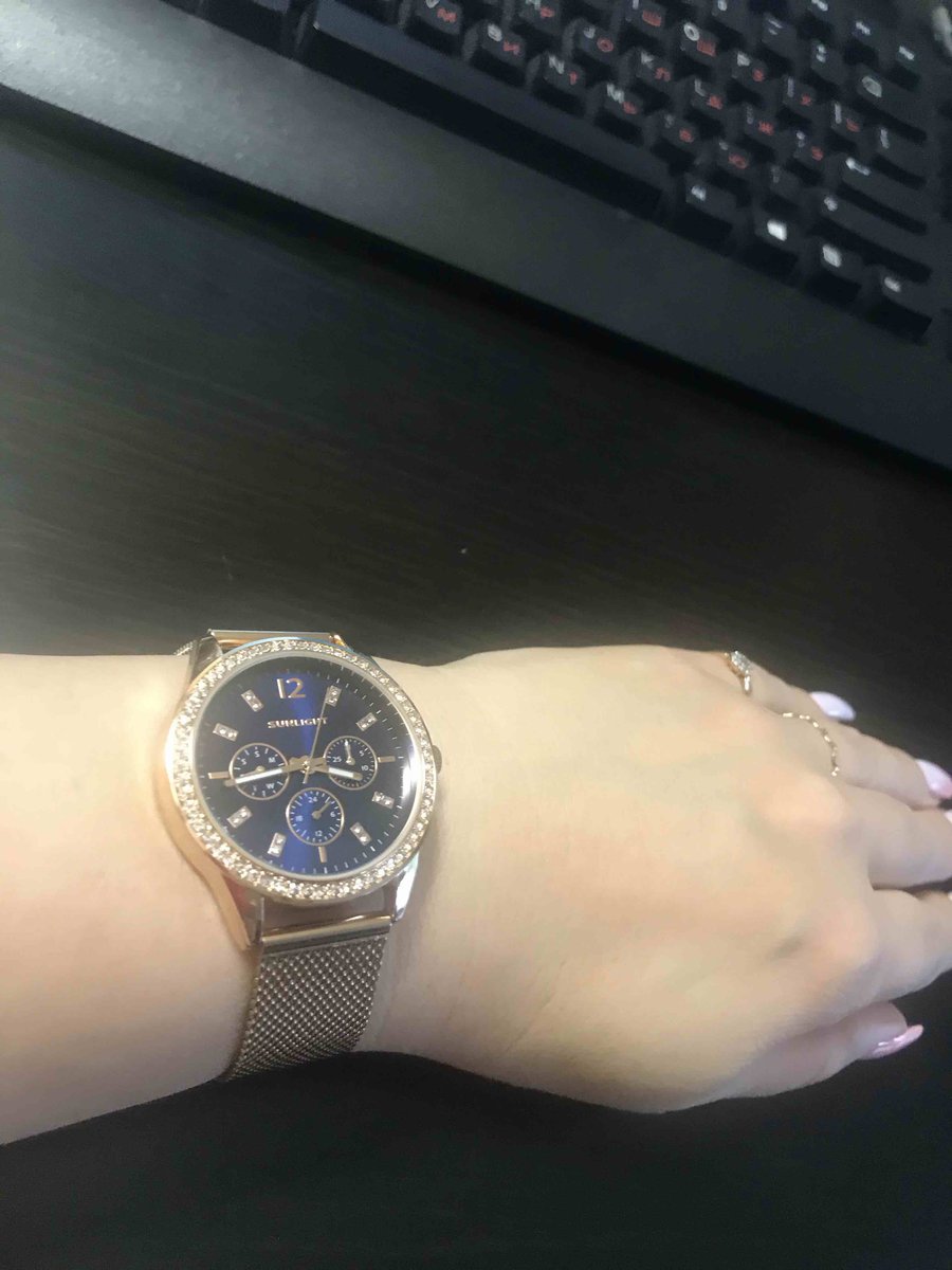 Блестит всё ,стрелки светятся, циферблат красивого синего цвета, дизайн отличный. Даже на самую маленькую ручку пойдут. Станут достойным аксессуаром к любому стилю. Увидела и влюбилась! Брала в магазине, девочки консультанты молодцы! Спасибо, Санлайту!