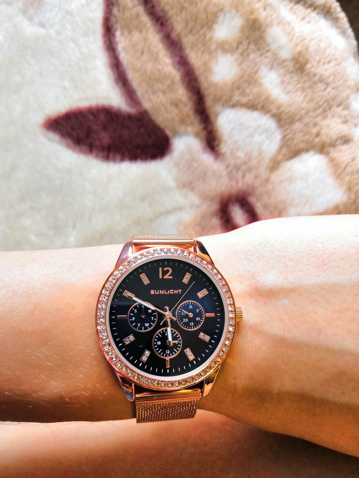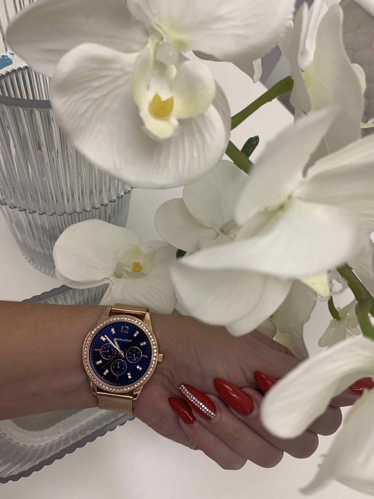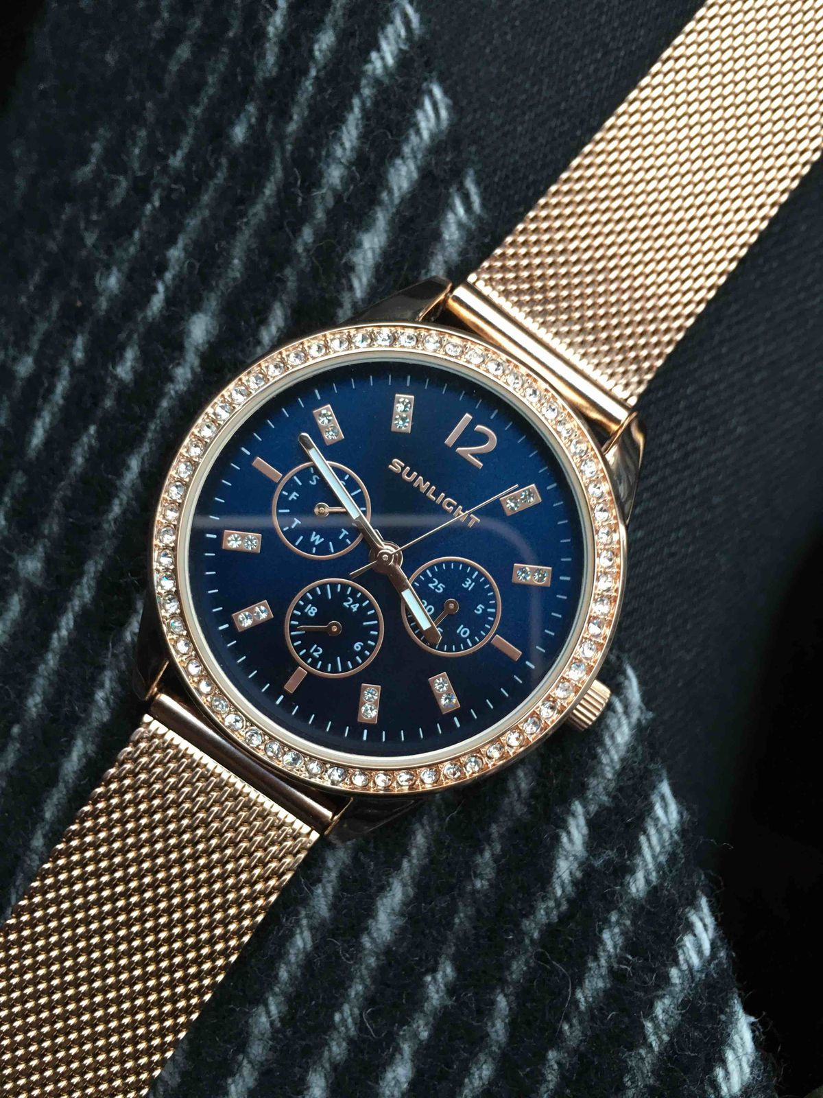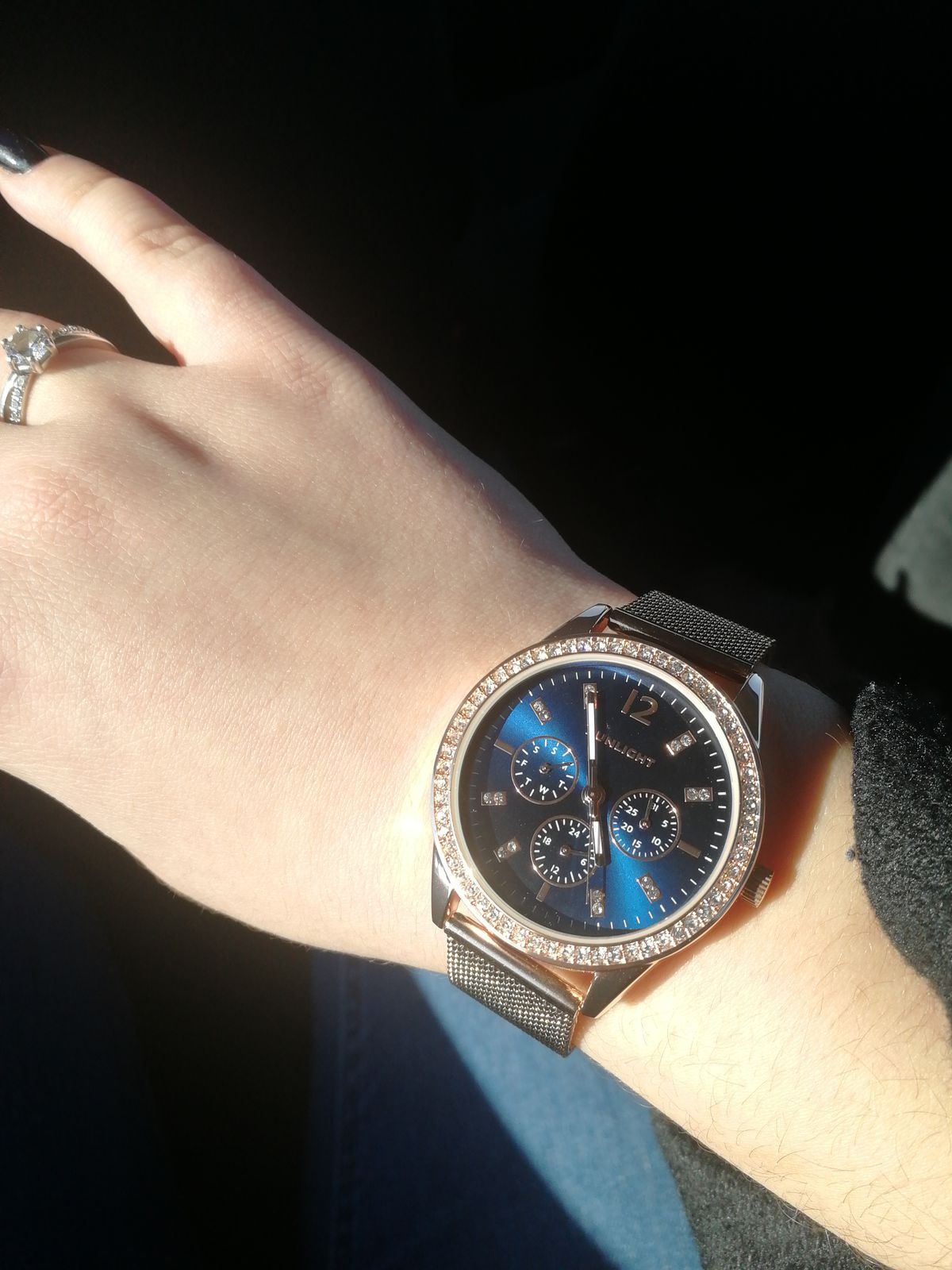 Блестит всё ,стрелки светятся, циферблат красивого синего цвета, дизайн отличный. Даже на самую маленькую ручку пойдут. Станут достойным аксессуаром к любому стилю. Увидела и влюбилась! Брала в магазине, девочки консультанты молодцы! Спасибо, Санлайту!