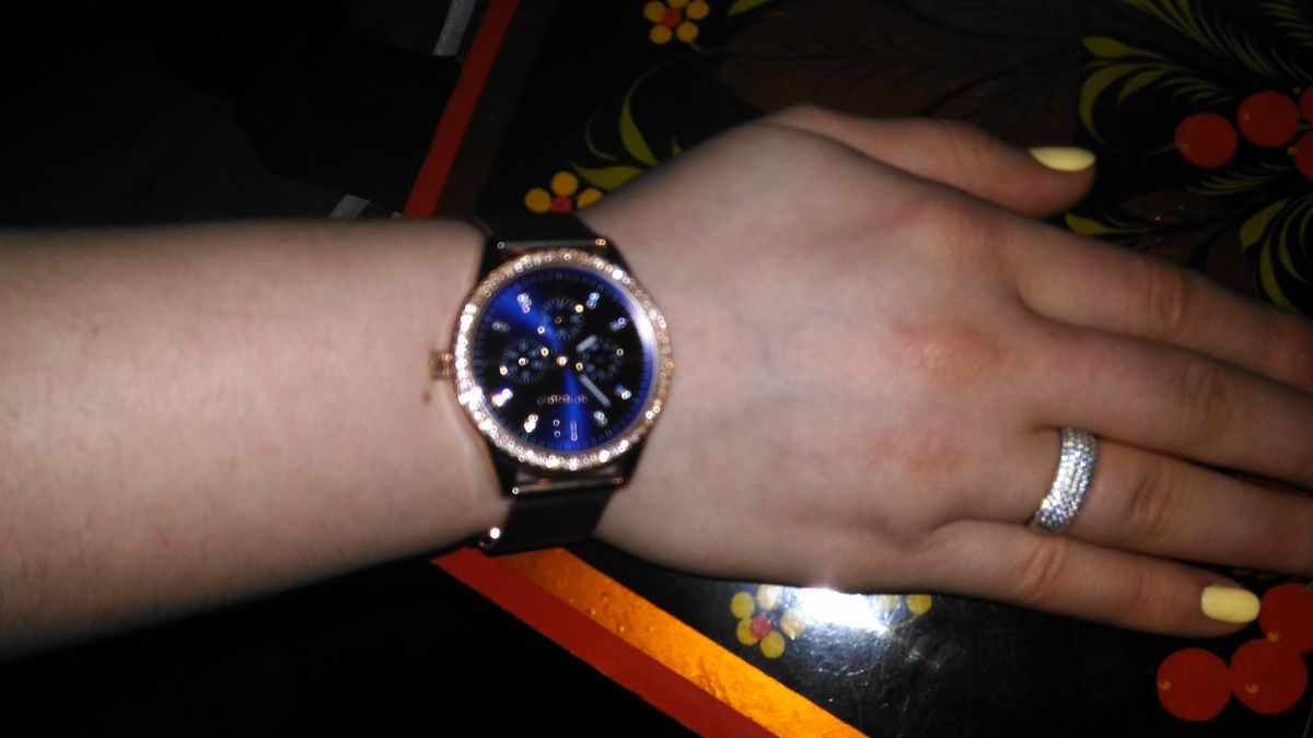На руке смотрятся очень здорово. Современные и очень стильные часы. Экран яркий и переливается на свету. Раньше носила маленькие часы, но эти хоть и больше, на руке смотрятся элегантно и дорого. Стрелки в темноте светятся. спасибо магазину санлайт, здесь замечательный выбор и продавцы профи.