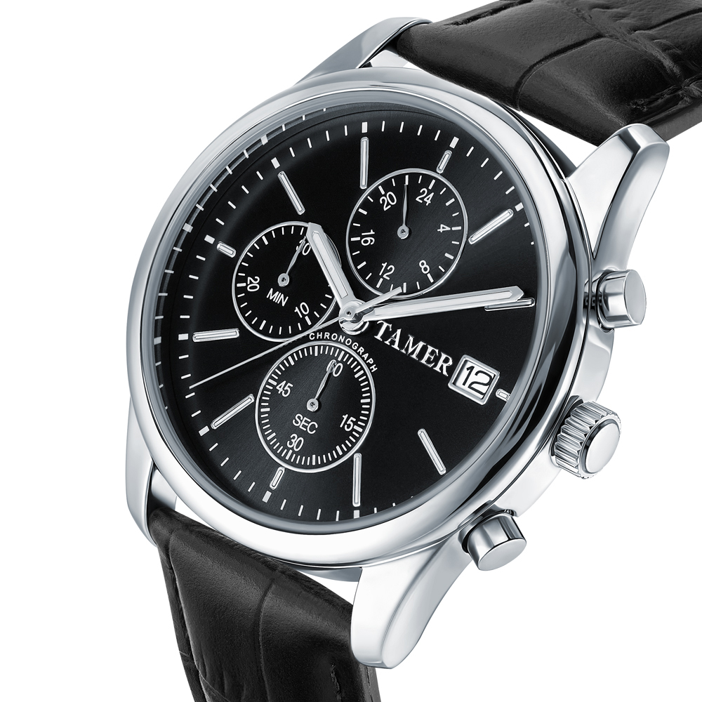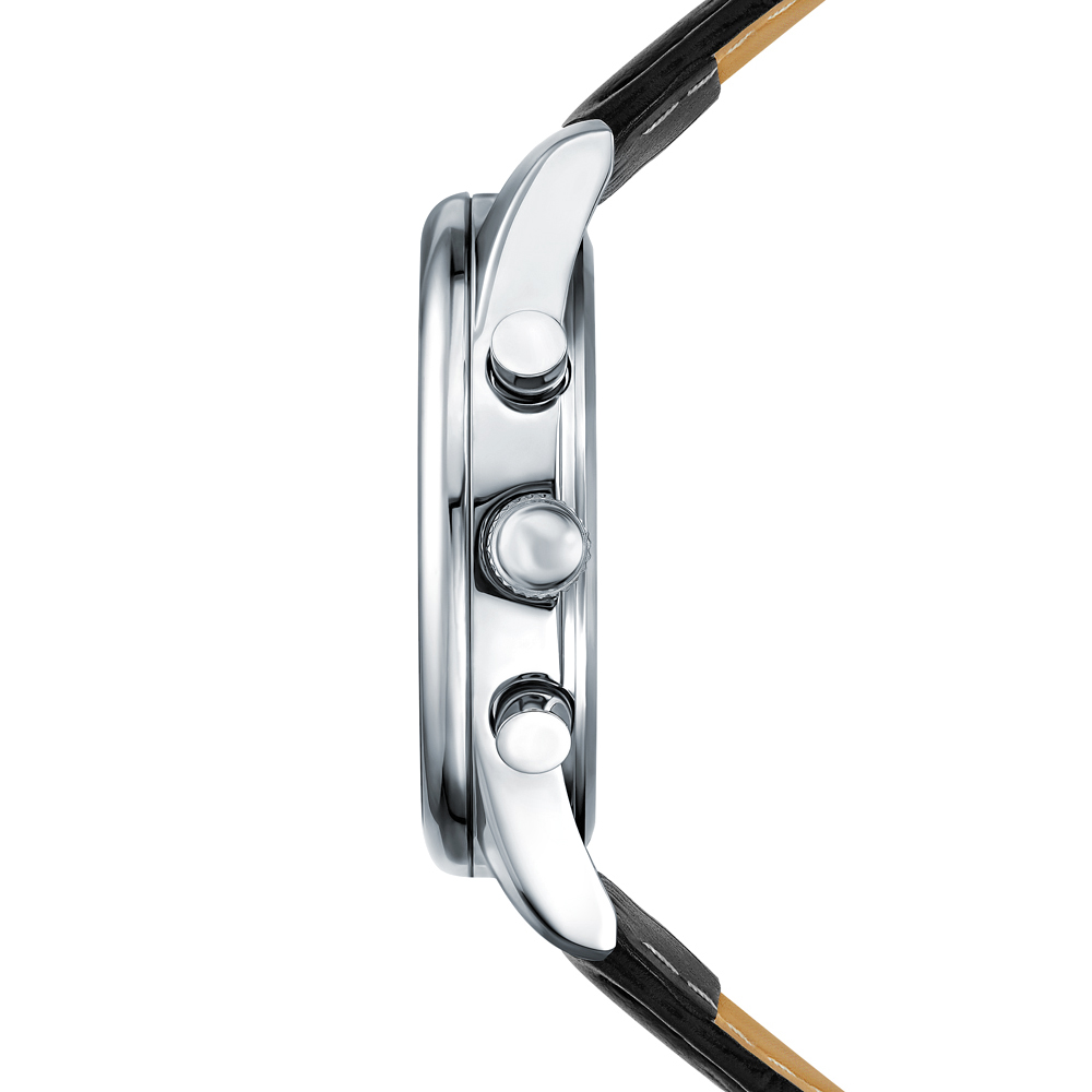 Корпус выполнен из металла*, минеральное стекло с антибликом защищает циферблат от внешнего воздействия. Японский кварцевый механизм SEIKO VR33 обеспечивает точный ход и оснащен функциями времени в 12/24 часовом формате, секундной стрелки, даты и хронографа. Водозащита 5 bar (50 m/165 ft) защитит от брызг и дождя.
