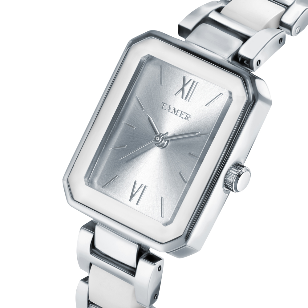 Линия модных женских часов. Яркий дизайн в сочетании с современными материалами делает их трендовым аксессуаром, украшающим любой образ. Корпус выполнен из керамики и металла*, минеральное стекло с антибликом защищает циферблат от внешнего воздействия. Японский кварцевый механизм Seiko VJ21 обеспечивает точный ход и оснащен функциями времени в 12 часовом формате. Водозащита 5 bar (50 m/165 ft) защитит от брызг и дождя.