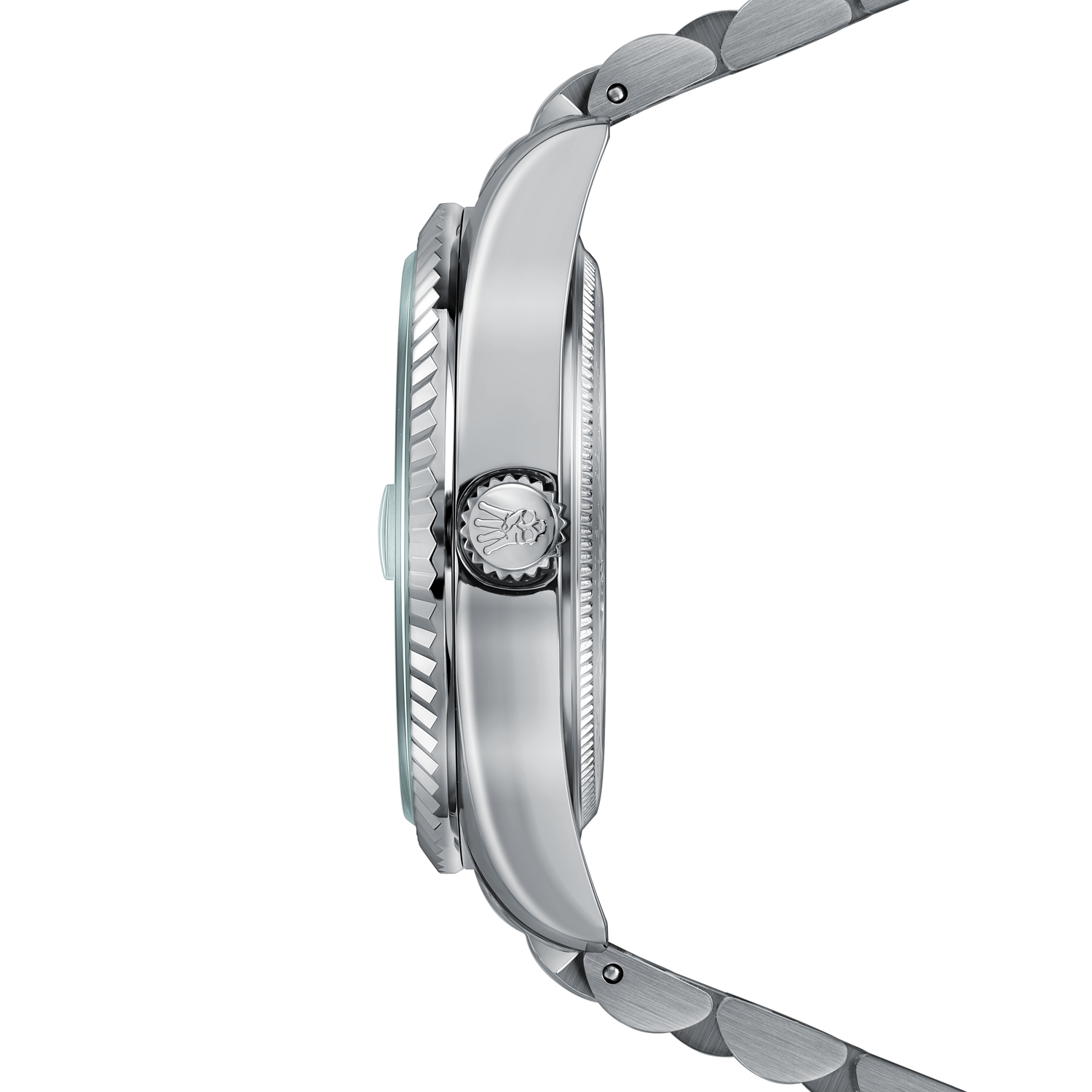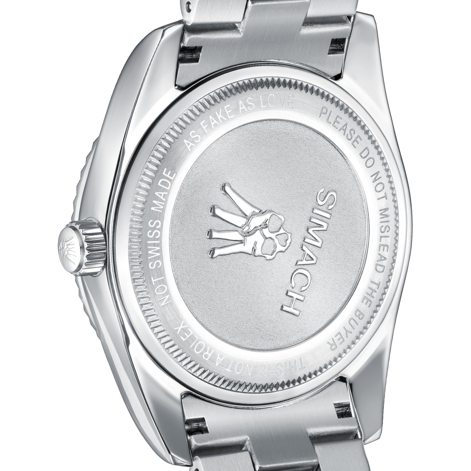 Корпус выполнены из медицинской стали 316L и держит водозащиту в 10 АТМ. Крышка часов и пряжка браслета украшены объемным брендовым знаком SIMACH. В сердце часов работает высокоточный японский механизм Seiko с плавным ходом секунды.