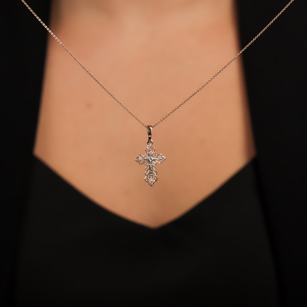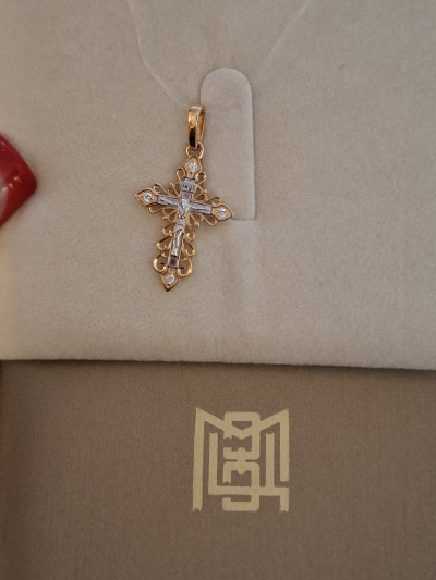 Очень нежный крестик. Упакован в красивую фирменную коробочку МЦЗ. Я очень довольна.