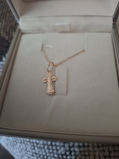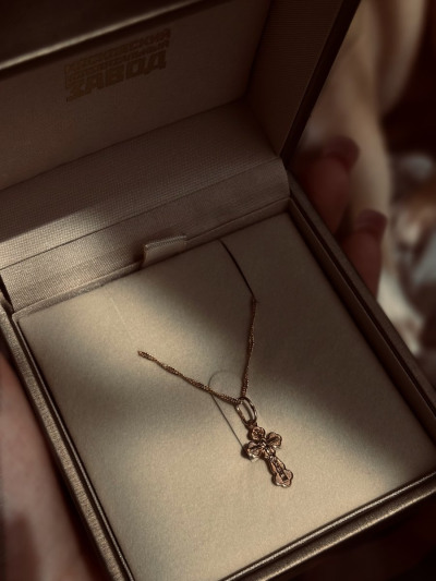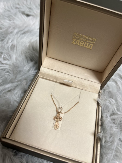 Миниатюрный крестик идеально подошел под такую цепочку, выглядит очень красиво