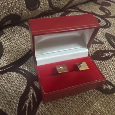 Золотые запонки с фианитами