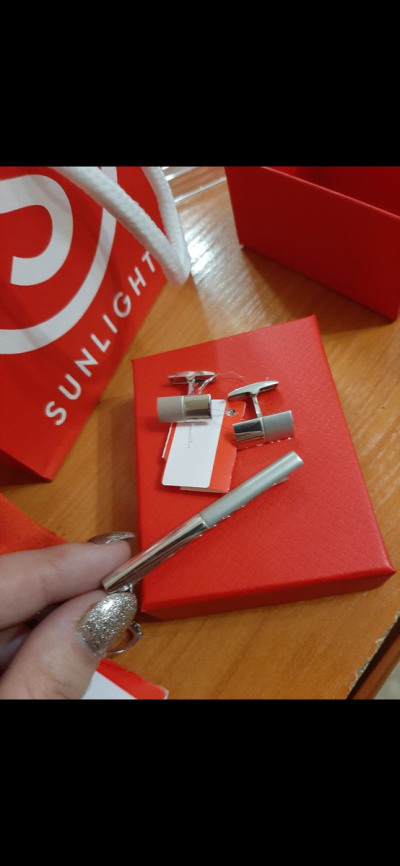 Серебряные запонки. Купила комплект с зажимом для галстука, очень стильно.