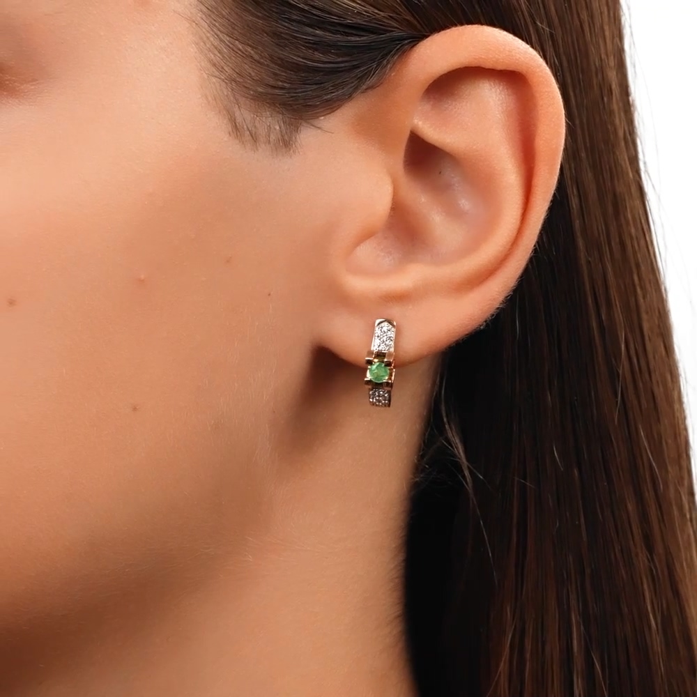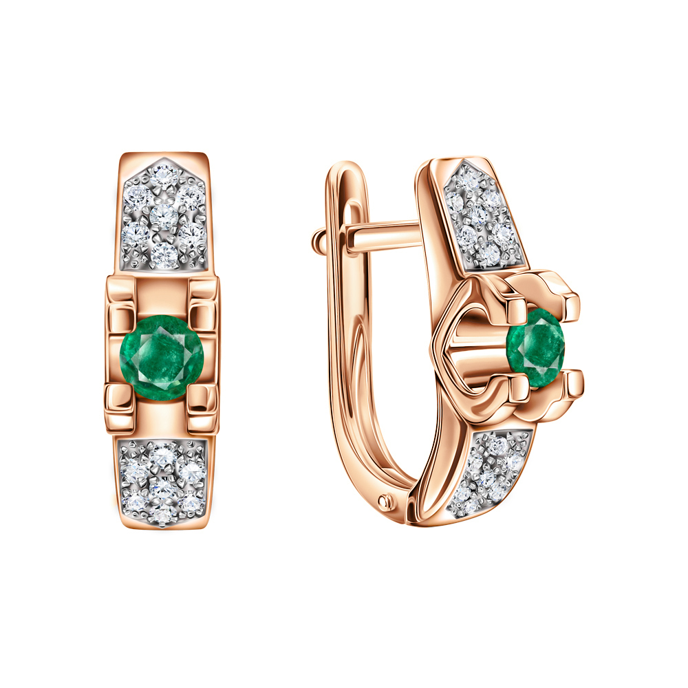 Золотые серьги с бриллиантами природными и изумрудами природными