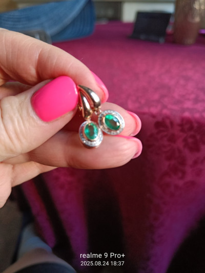 2 изумрудами природными, 1.17 карат, цвет 3, чистота 3, тип огранки Б;