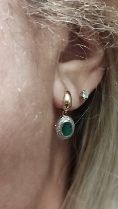 Золотые серьги с бриллиантами природными и изумрудами природными