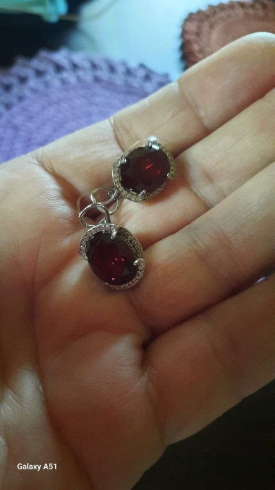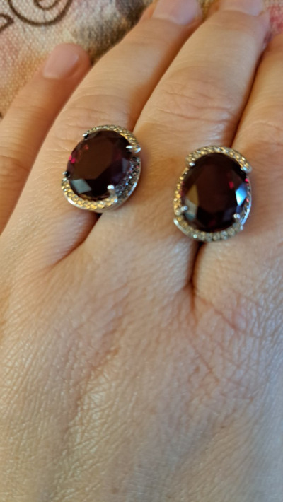 Идеальные гранатовые серьги нано. Очень понравились. Тяжёлые, но за счёт замка не смотрят вниз