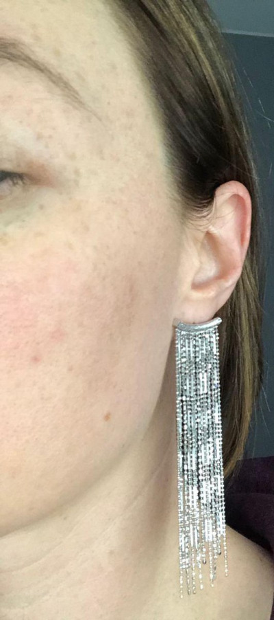 Очень красивые и нежные серьги. Я не рассчитала размер мочки, мне оказались великоваты. Немного оттягивают мочку и выглядят великоватыми, но мне так даже больше нравится