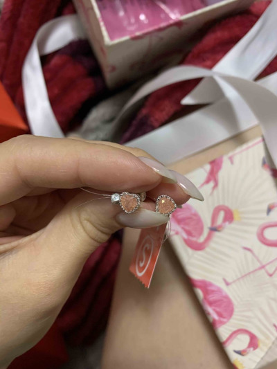 Маленькие пуссеты в форме сердечка из фианита очень редкого цвета, который вместе с переливами огранки и крепления повышает тонус. Класс!