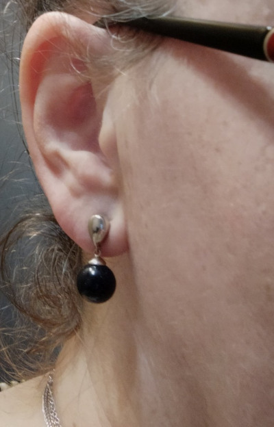 Красивые серьги, покупала к кольцу. Серьги пусеты, заглушка металлическая, держит плохо. Пользуюсь силиконовой.