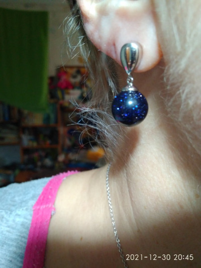 Прекрасные серьги, которые притягивают взгляды своими авантюринчиками. Два кусочка звёздного неба. При дневном свете особенно хороши